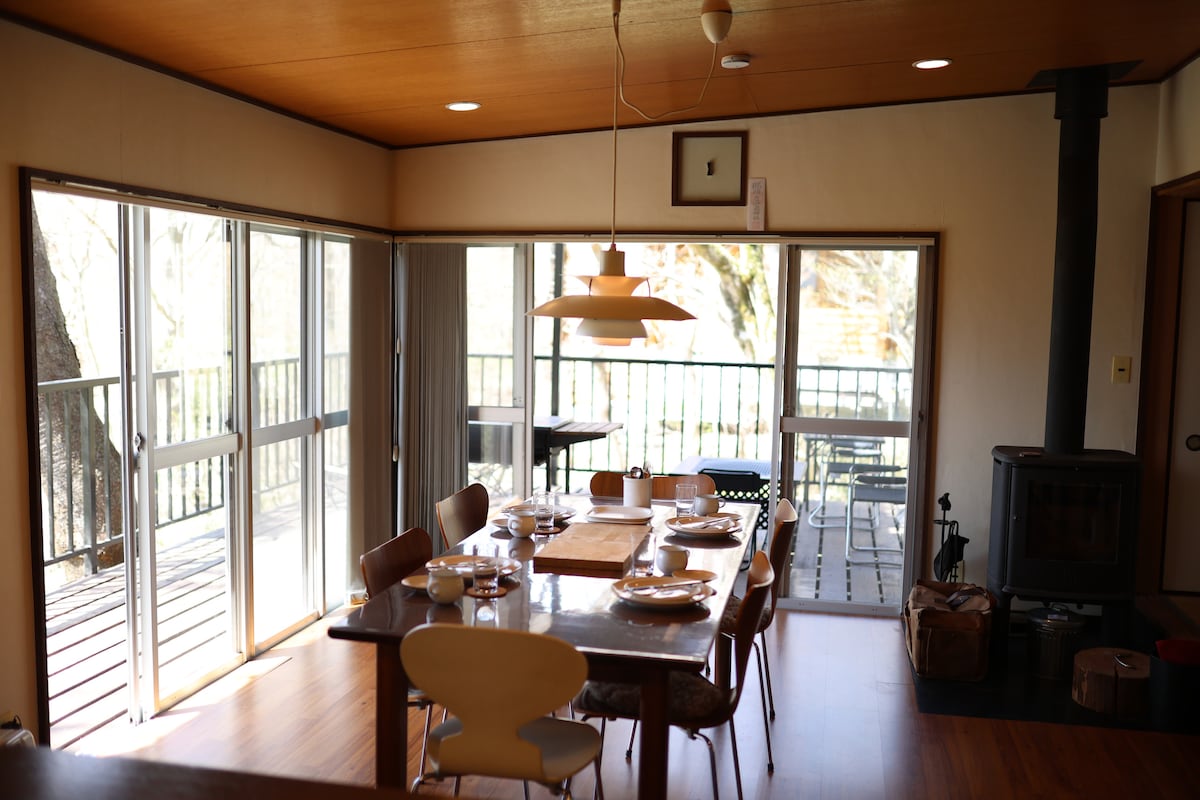 Tempat persembunyian dewasa anda sendiri yang terletak di dalam hutan.Dari Persimpangan Pintar Nasu Kogen, ia adalah 12 minit di jalan umum dengan sedikit trafik dan trafik. Ia juga berjarak 15 minit memandu dari destinasi pelancongan utama di Nasu. Oleh kerana ketinggiannya lebih tinggi daripada pusat, suhunya kira-kira 10 darjah lebih sejuk daripada di pusat bandar.Anda boleh kekal sejuk pada musim panas tanpa penyaman udara. Masa yang menyeronokkan untuk meluangkan masa bersama keluarga dan rakan anda dengan matahari di teres yang luas. Terdapat ruang BBQ yang lebih besar di luar.Terdapat teduhan di atas meja dan payung di atas sofa, jadi anda boleh menghabiskan masa berehat di dalam hutan. Ruang tamu dan ruang makan yang luas dilengkapi sepenuhnya dengan teater 4K 120 inci, jadi anda boleh menikmatinya di dalam rumah pada hari hujan. Di luar, terdapat lubang api 75cm besar yang boleh digunakan oleh ketuhar sentuh.Bersantai dan nikmati ruang istimewa di mana anda boleh menikmati yang luar biasa sambil merehatkan hati anda dari turun naik api.Dunia kehijauan di mana sahaja anda melihat pokok semula jadi yang digunakan untuk dinding dan lantai.Sila berehat dalam keindahan kehijauan. Tempat letak kereta untuk 4 kereta, 5 kereta boleh dirujuk.