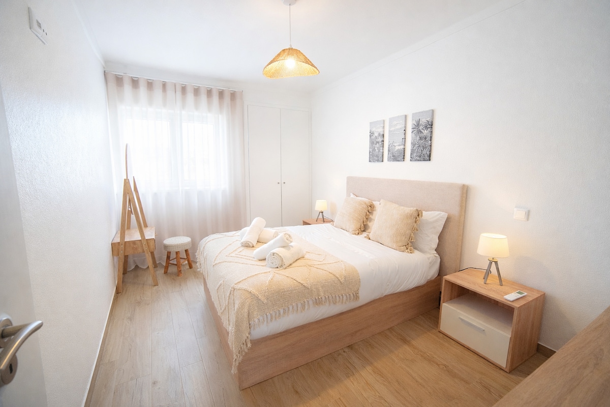 Apartmen dengan bilik tidur yang dihiasi dengan banyak kasih sayang, dan kehalusan supaya anda boleh menikmati beberapa hari berehat dengan semua keselesaan yang ditawarkan oleh ruang ini. Luas dengan garaj dan teres persendirian. Kami berada di Pusat, 6 minit berjalan kaki ke pantai, restoran, kedai pastri, pasar raya, semuanya sangat dekat supaya anda boleh menikmati penginapan anda tanpa perlu mengembara dengan kereta . GEMBIRA di sini :)) Kami sedang menunggu anda !!
