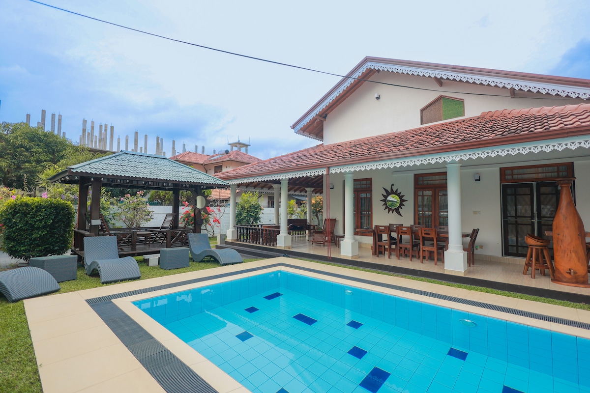 Vila selesa di tepi laut, hanya 15 minit dari lapangan terbang Colombo. Tempat persinggahan yang sesuai untuk anda dan keluarga anda memulakan atau menamatkan percutian anda di Sri Lanka. Pantai yang indah berada betul-betul di hadapan anda dan kolam renang dengan dek untuk bersantai apabila matahari terbenam. Setiap bilik mempunyai bilik mandi en suite persendirian, penyaman udara, ruang meja dan akses ke teres. Vila unik ini boleh menyediakan sarapan atas permintaan dan mempunyai perkhidmatan pembersihan harian. Ini adalah tempat yang sesuai untuk berehat kerana hanya 20 minit dari Colombo.