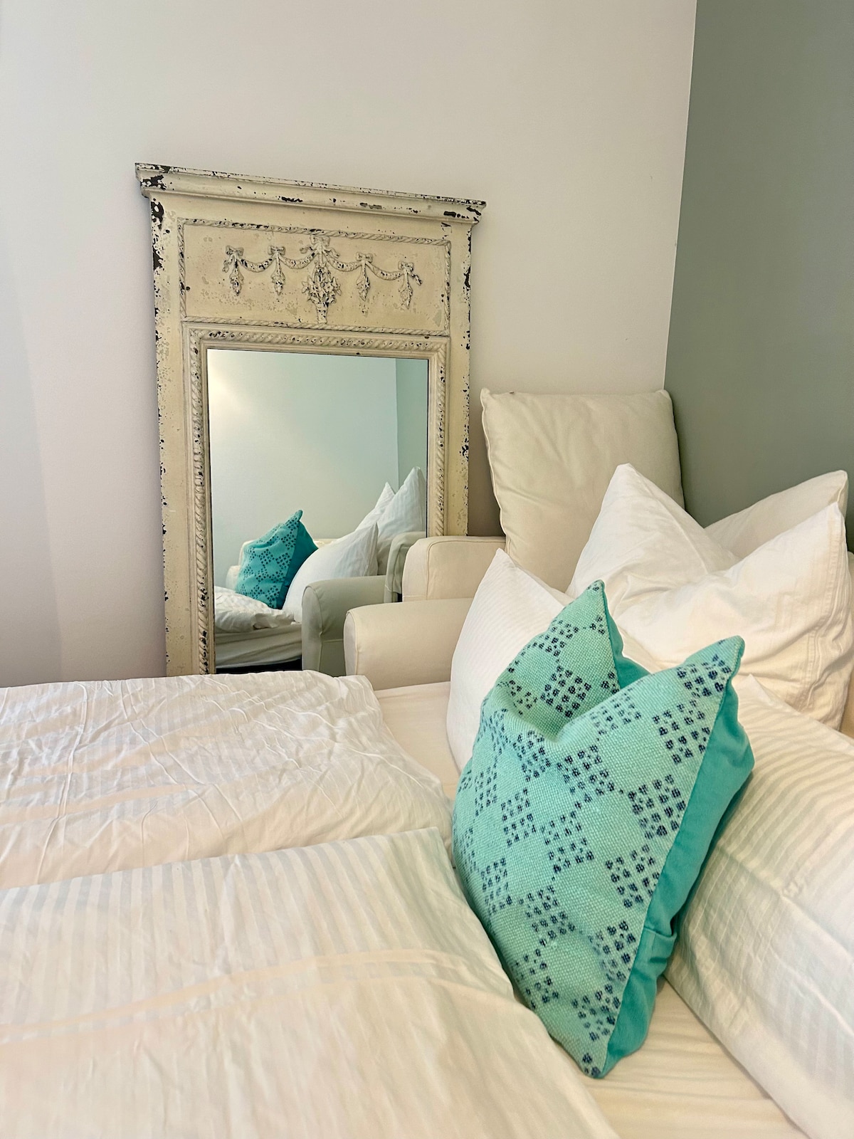 Helle und sonnige Dachgeschosswohnung mit gemütlichem Surf-Vibe und künstlerischen Details. Geräumig mit hohen Decken. Zentral gelegen mit Restaurants, Cafés und Supermarkt in Gehweite. Bahnhof 3 Min. zu Fuß, der See nur 5 Min. entfernt mit dem Fahrrad. Ruhig und nah an der Natur. Kleiner Balkon mit Seeblick, große Terrasse im EG. Parkplatz im Innenhof, 2 Fahrräder vorhanden. Voll ausgestattete Küche, Waschmaschine und viele Bücher zur Nutzung während des Aufenthalts.