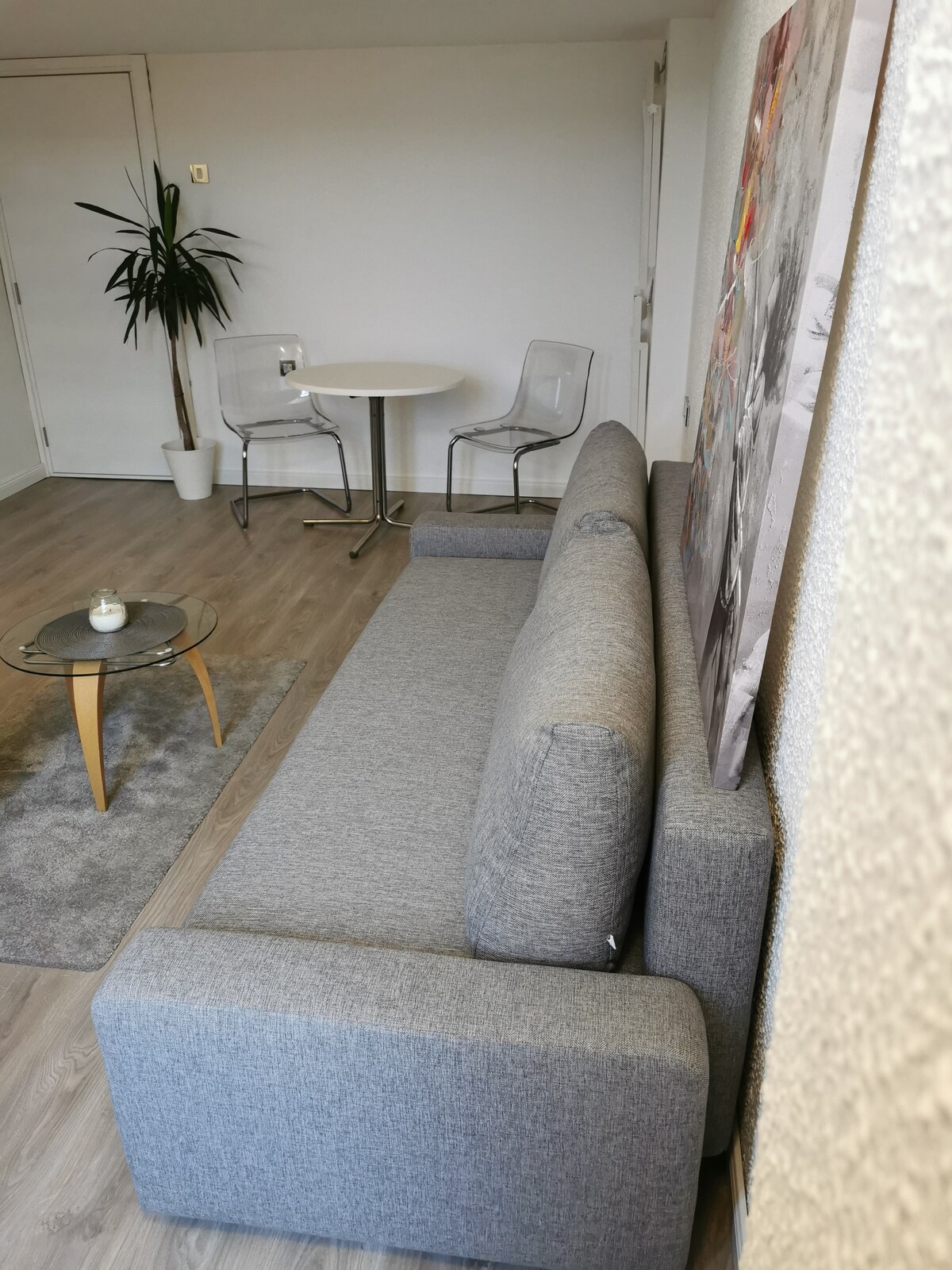 1.5 km dari dataran utama atau 2 perhentian bas..65m2, ruang tamu besar, 2 bilik tidur, 2 balkoni, kabin hydromassage..Di sebelah pasar raya Lidl, banyak kedai, makanan jalanan, restoran dan kafe berhampiran ..Jika anda memerlukan pemanduan dari lapangan terbang 25 € sehala