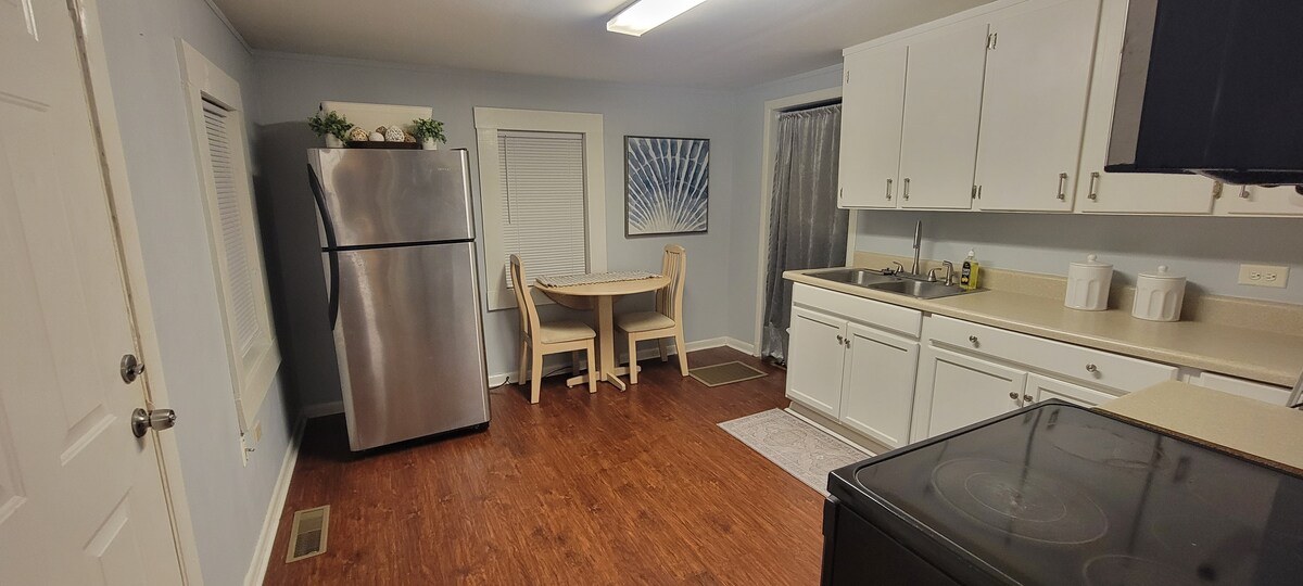 Nikmati diri anda di kotej yang diubahsuai dan diubahsuai sepenuhnya ini yang terletak di tengah-tengah Enterprise, AL. Ruang ini telah direka dengan mengambil kira tetamu. Kami menawarkan dapur penuh, dobi, internet gentian optik berkelajuan tinggi, dan semua perabot baru dalam rumah era Perang Dunia II yang moden ini. Kami berhasrat untuk menggembirakan dan, walaupun baru menyertai Airbnb, kami telah menjadi hos untuk perjalanan lebih 1000 - 5 Bintang di platform P2P lain. Anda akan suka kembali ke kotej Come Chill. New Pickleball Courts 3 min away!