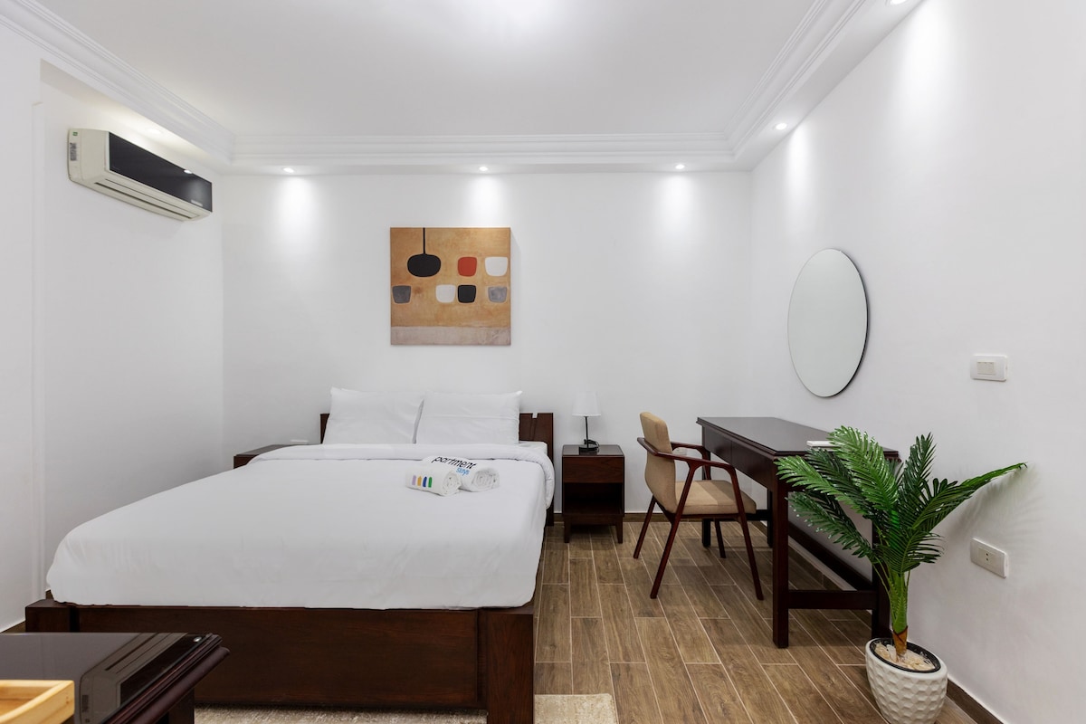 Make yourself at home in this cozy king room right in the heart of New Cairo! Just steps from AUC Avenue, Midtown Mall, and top cafés and entertainment spots, it’s the perfect mix of comfort and convenience. Relax in your king-size bed, unwind in a clean and stylish space — everything you need for a comfy Cairo stay.