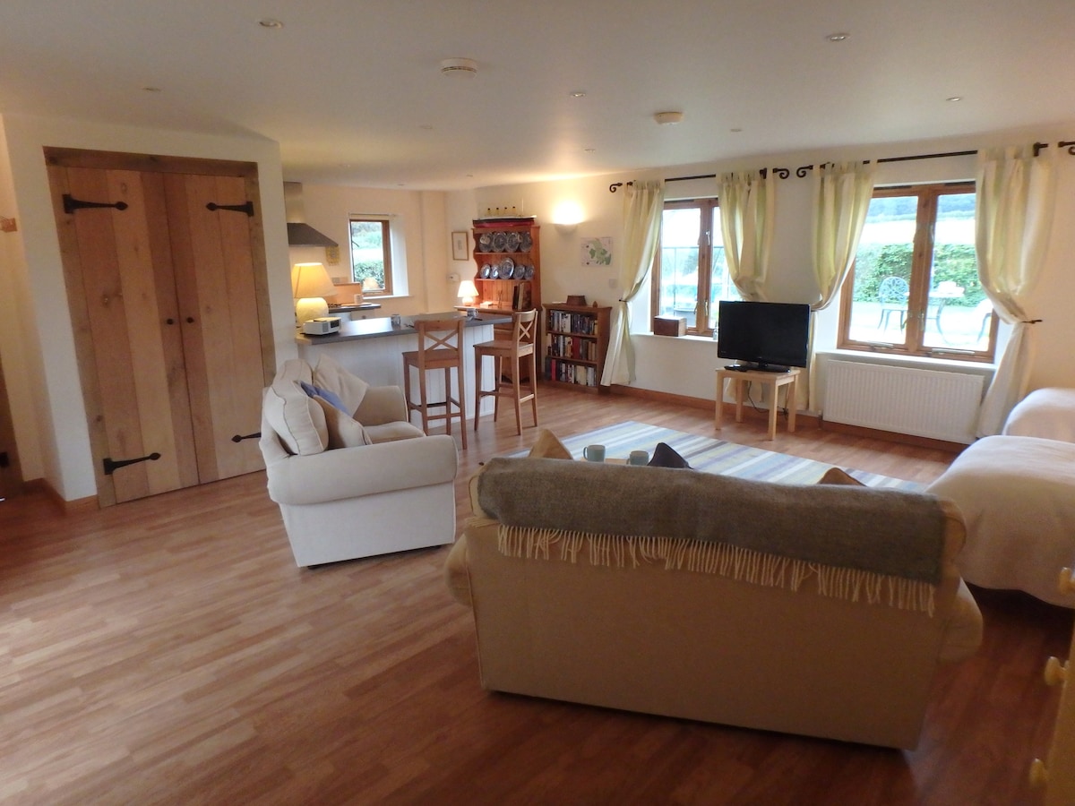 Taman ini terletak di Coopers Farmhouse. Unit serba lengkap ini terletak di tingkat atas, di atas garaj kami, dengan balkoni yang menghadap padang dan taman yang cantik. Anda memasuki ruang tamu dengan dapur mini, TV dan ruang duduk dan sofa bed (king). Melalui gerbang (tiada pintu) dan di bilik tidur katil berkembar boleh disatukan dan dijadikan katil double besar yang cantik jika perlu. Akhir sekali, bilik mandi ensuite. Sarapan kontinental kecil akan ditinggalkan untuk penginapan pagi pertama anda.