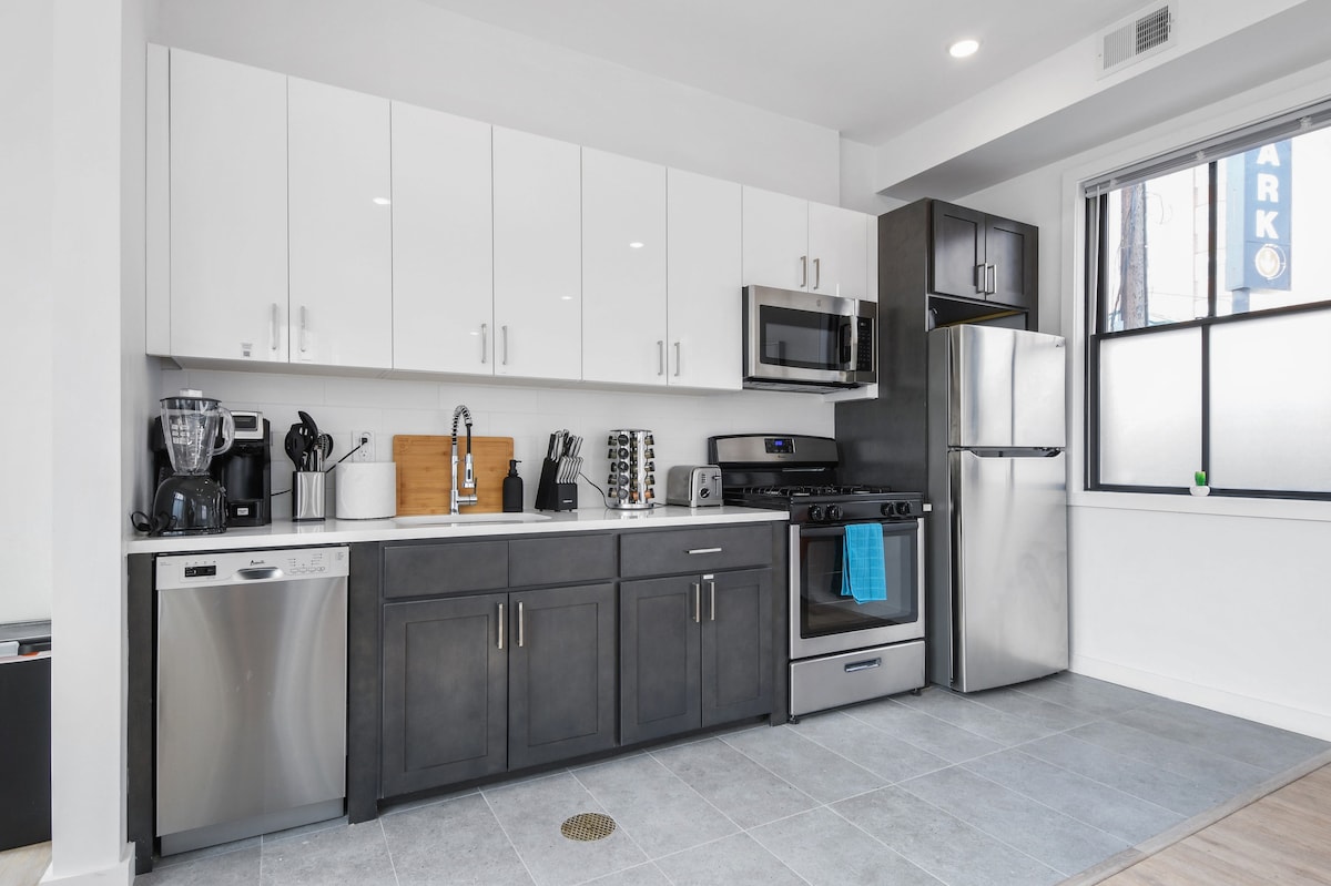 JENAMA BARU ^SUPER MODEN^2 Bed-1 Bath Apt di Newark Ironbound. - 18 minit dengan kereta api terus ke NYC (Stesen Penn) - 12 min berjalan kaki (0.6 batu) ke Stesen Newark Penn di mana anda boleh melalui LALUAN ke Hoboken, Jersey City dan WTC - 16 min memandu/ 4 min menaiki kereta api ke Lapangan Terbang Newark - 6 min memandu/ 20 min berjalan kaki ke Red Bull Arena - 20 minit memandu ke Stadium Metlife/ American Dream Mall - Untuk penginapan bulanan hubungi saya terus untuk kadar diskaun istimewa