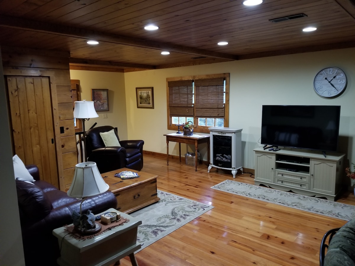 Mahu percutian yang tenang di dalam hutan? Pemandangan dari setiap bilik yang menghadap padang dengan hutan, rusa dan hidupan liar, penginapan 2 hari min., percutian 3 hari, atau penginapan lanjutan dibenarkan jika tersedia. A luxury 2 BR apt., located upstairs in a unique barn, loaded with amenities located 1/2 mile down a gravel drive, with scenic woods and wildlife. Penginapan ini boleh memuatkan hingga 4 orang + kanak-kanak Bilik tidur mempunyai kipas siling, katil king baru di bilik tidur yang dilengkapi dengan barangan antik Mesin basuh * Yuran pembersihan rendah