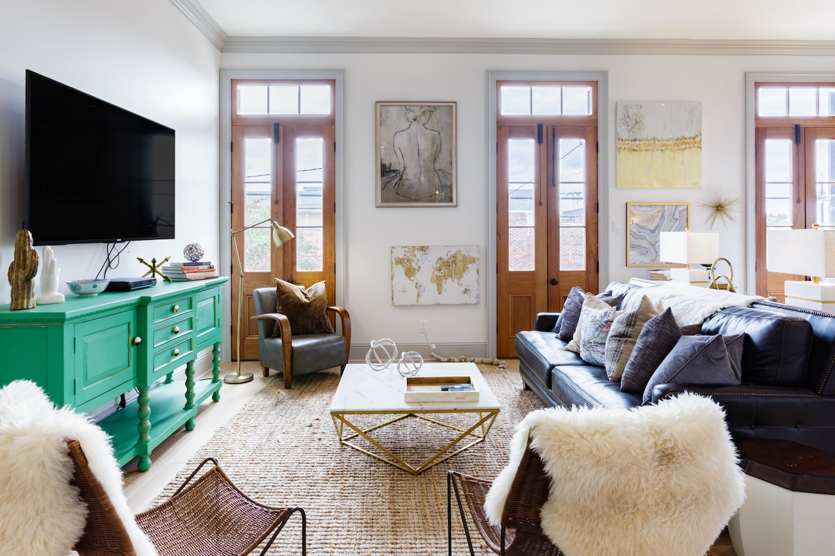 Nikmati & berehat di LE HIBOU BLANC ST ANTHONY yang hebat di Marigny Triangle! - Konsep terbuka sesuai untuk bersantai bersama. - 3 blok ke French Quarter dan Frenchmen Street. - Ruang tamu utama berada di tingkat dua dengan balkoni. - Lihat buku panduan Chris + Caroline untuk tempat dan aktiviti tempatan terbaik berdekatan! - Trem ke pusat bandar hanya beberapa langkah jauhnya. - Kedai runcit tempatan & farmasi berada berhampiran. - Rumah yang indah, bersejarah & berwarna-warni untuk dikagumi!