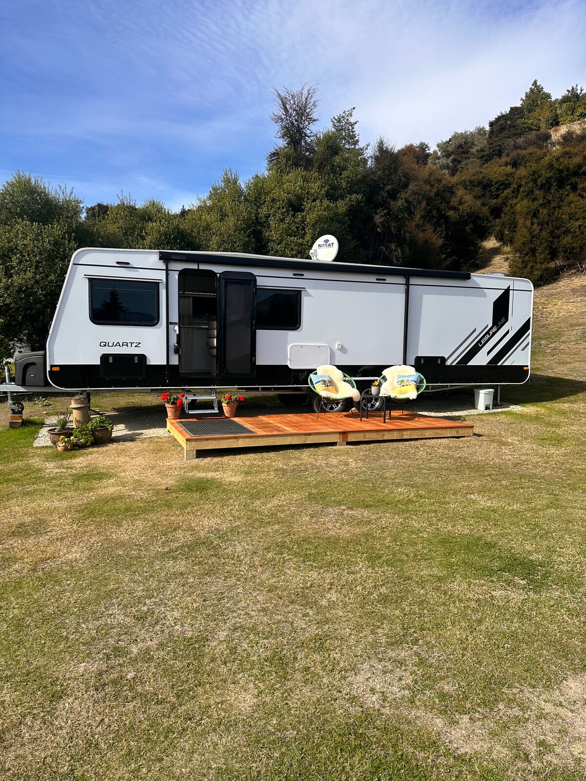 Terokai percutian Wanaka yang sempurna, karavan Leisure Line Quartz 30ft baharu yang direka untuk bersantai dan mengembara. Terletak dalam suasana separuh ekar persendirian di Mt Iron, penginapan mewah ini menawarkan kemasan premium, ruang yang luas, privasi dan pemandangan gunung yang hebat. Sama ada anda berada di sini untuk bermain ski di lereng, meneroka tasik atau hanya berehat dengan bergaya, percutian moden yang serba lengkap ini adalah tempat ideal anda untuk pengembaraan dan ketenangan.