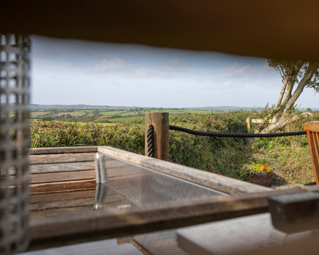 Kabin, tab mandi air panas, ladang Pembrokeshire @littlesladefarm