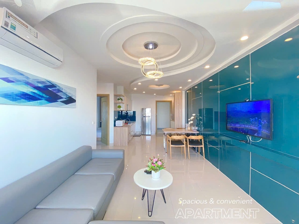 Berfikir untuk melawat Da Nang? Saya mempunyai apartmen 2 bilik tidur di bangunan tinggi yang sesuai untuk penginapan anda. Kondominium tepi pantai ini dilengkapi dengan kemudahan seperti mesin basuh, TV dan daftar masuk sendiri. Bilik mandi peribadi, dapur dan ruang tamu kami juga boleh anda nikmati. Jika anda mahu pergi ke restoran, kedai kopi dan pantai, kami dalam jarak berjalan kaki. Cipta kenangan di tempat unik dan mesra keluarga ini.