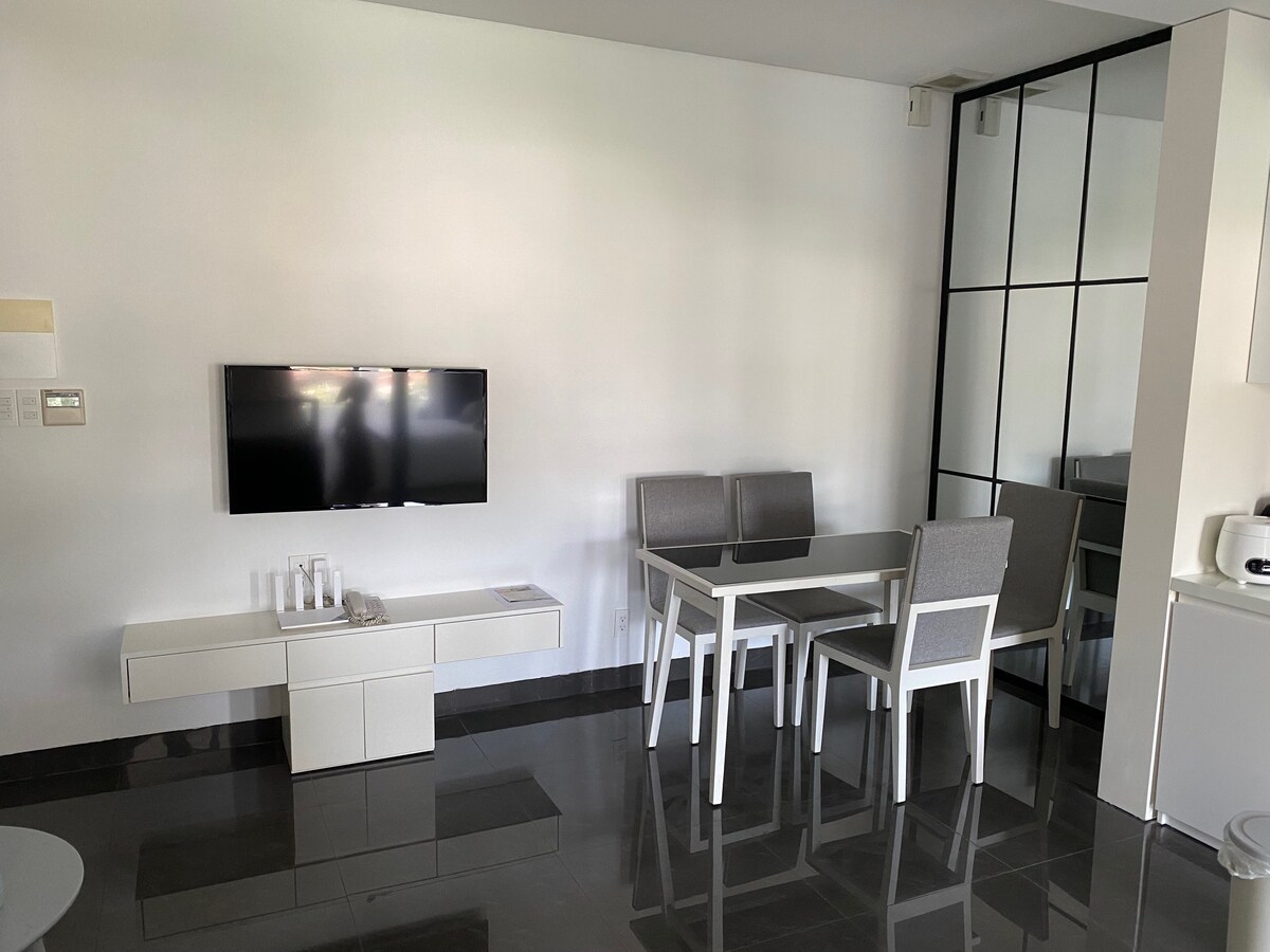 Apartmen gaya selesa dengan 2 bilik tidur, setiap bilik tidur mempunyai pemandangan laut panorama yang indah dari tingkap besar, anda boleh menikmati pemandangan laut dan matahari terbit dari katil anda! Apartmen ini mempunyai 1 ruang tamu yang dilengkapi dengan TV pintar dan sofa yang selesa, balkoni untuk bersantai, 1 dapur lengkap, 2 WC. Apartmen kami terletak di tingkat tinggi (tingkat 32 dan 35). Terdapat juga kolam renang, gimnasium, sauna, restoran dan bar di lokasi bangunan. Anda sentiasa dialu-alukan untuk menikmati percutian di apartmen kami!