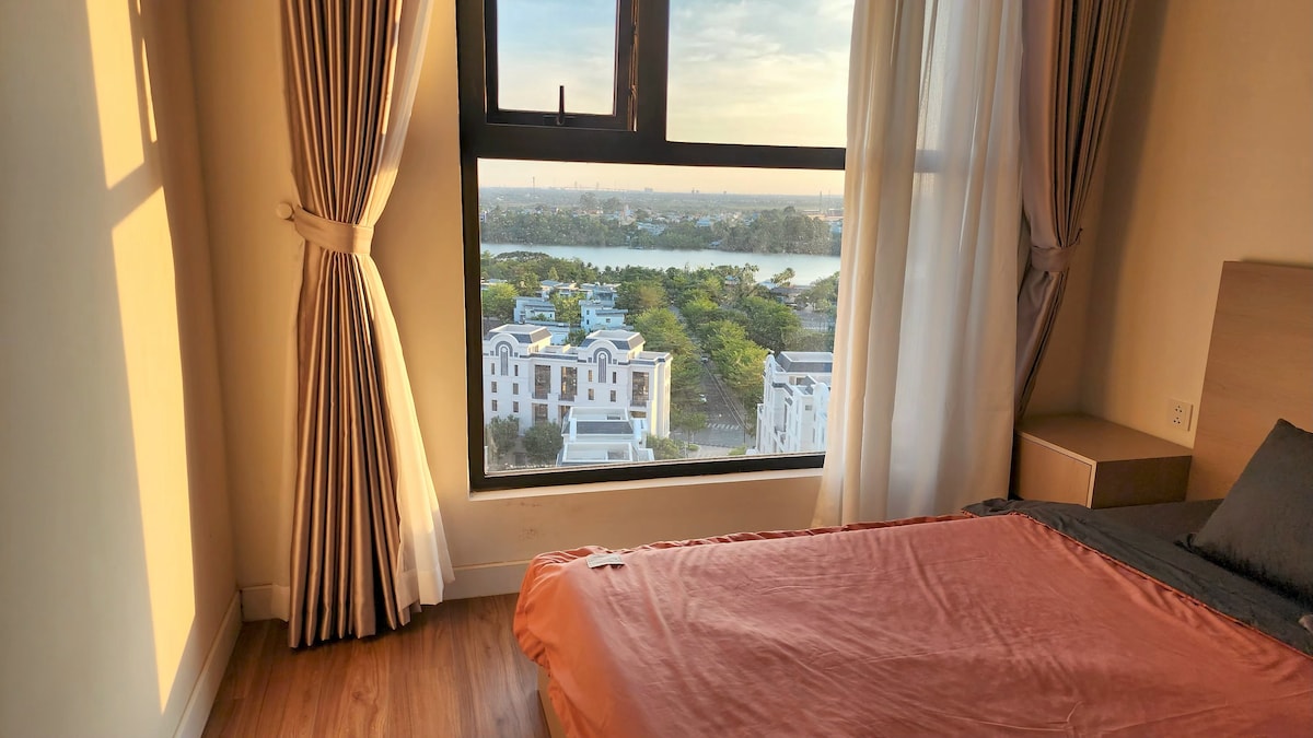 Unit pemandangan sungai mewah baharu betul-betul di sebelah Sungai Saigon di daerah 2 bersebelahan dengan daerah 1 dan 7. 8 Minit ke Pusat Bandar Ho Chi Minh City. Apartmen 2 bilik tidur tingkat 19, bilik tidur ke-2 ditukar kepada pejabat dengan meja kecil dan pencetak tetapi juga mempunyai tilam lantai saiz queen. Semua kemudahan penginapan disertakan termasuk gimnasium, penggunaan kolam renang dan kawasan persendirian. Unit memiliki 2 balkoni luar. Kompleks mengekalkan keselamatan 24 jam dan tempat letak kenderaan berbayar disediakan.