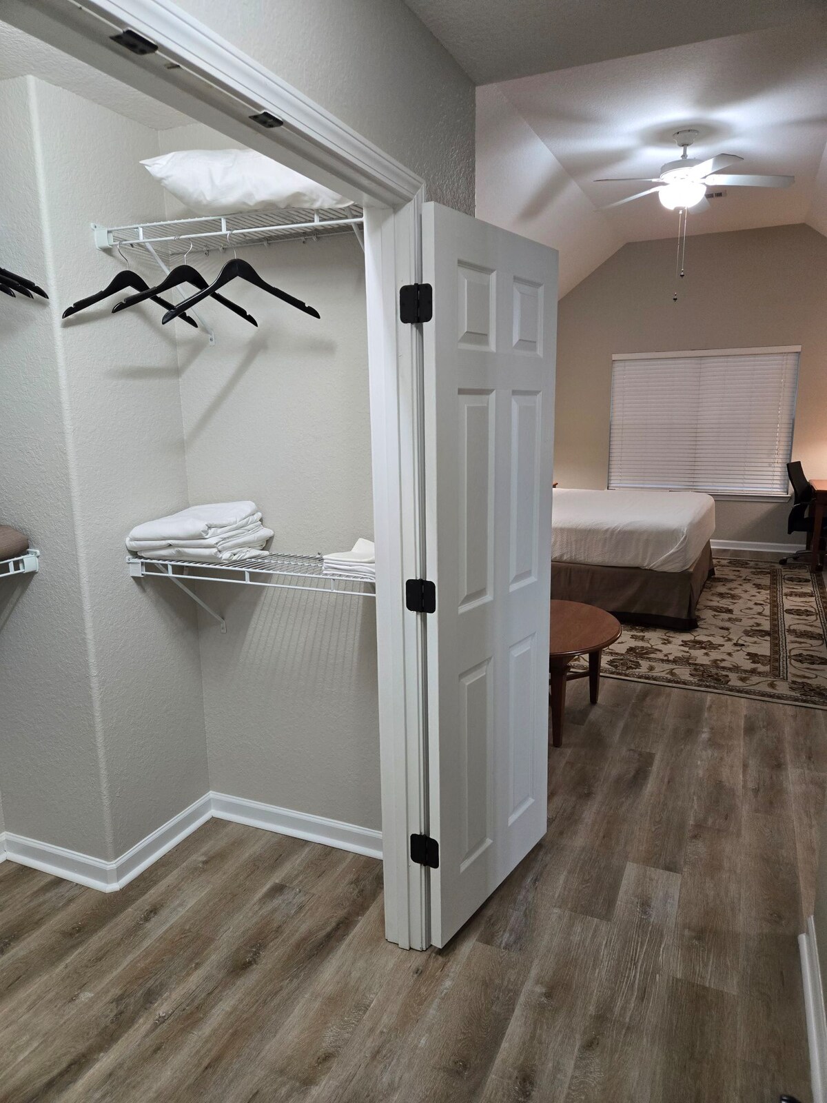 My wife and I own and live in the house, but the portion of the house we are using as Airbnb has a private house entrance, bedroom, bathroom, and living room area. As well as the use of a washing machine and dryer. We are 2 minutes from WalMart, 15 minutes from Okaloosa Island beaches, and 20 minutes from Destin. We have a coffee machine, microwave, propane grill, and mini fridge set up. We allow pets at a $50 additional charge and have a large fenced in back yard for them.