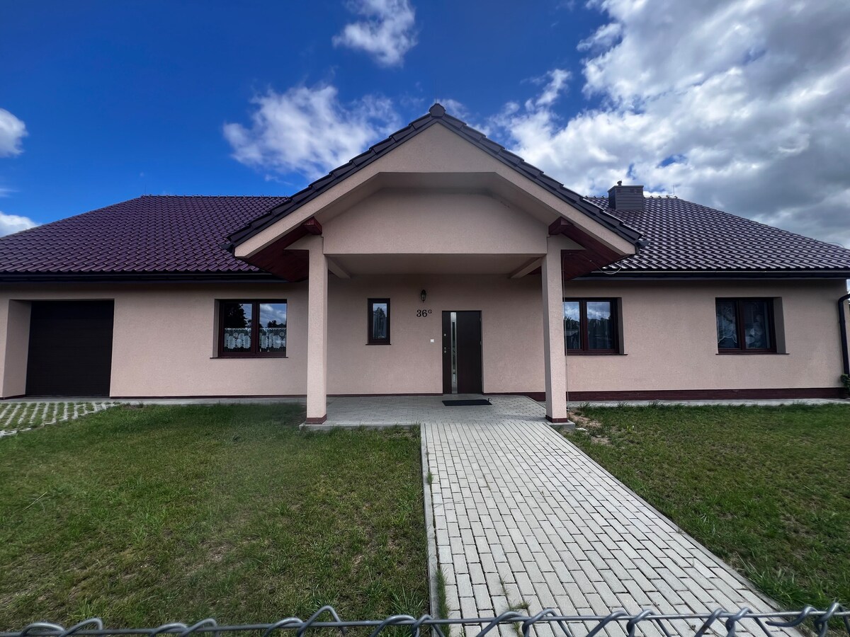 Rumah yang indah di kawasan semula jadi di lokasi yang sangat baik! 300m dari tasik dengan pantai berpasir dan jambatan dan 100m ke hutan! Teres besar yang berbumbung, buaian rajut dan buaian. Tanah yang dijaga dengan baik dengan hutan dan rumput. Api unggun dengan bangku kayu, rumah permainan untuk kanak-kanak, kolam renang boleh lipat. Akses mudah melalui jalan raya ekspres S7! Rumah ini terdiri daripada ruang tamu, 2 bilik tidur, dapur lengkap dan bilik mandi. TV, WiFi LTE. Di kawasan sekitar: kayuh kayak di Sungai Łyna, laluan basikal, muzium terbuka, istana, Grunwald!