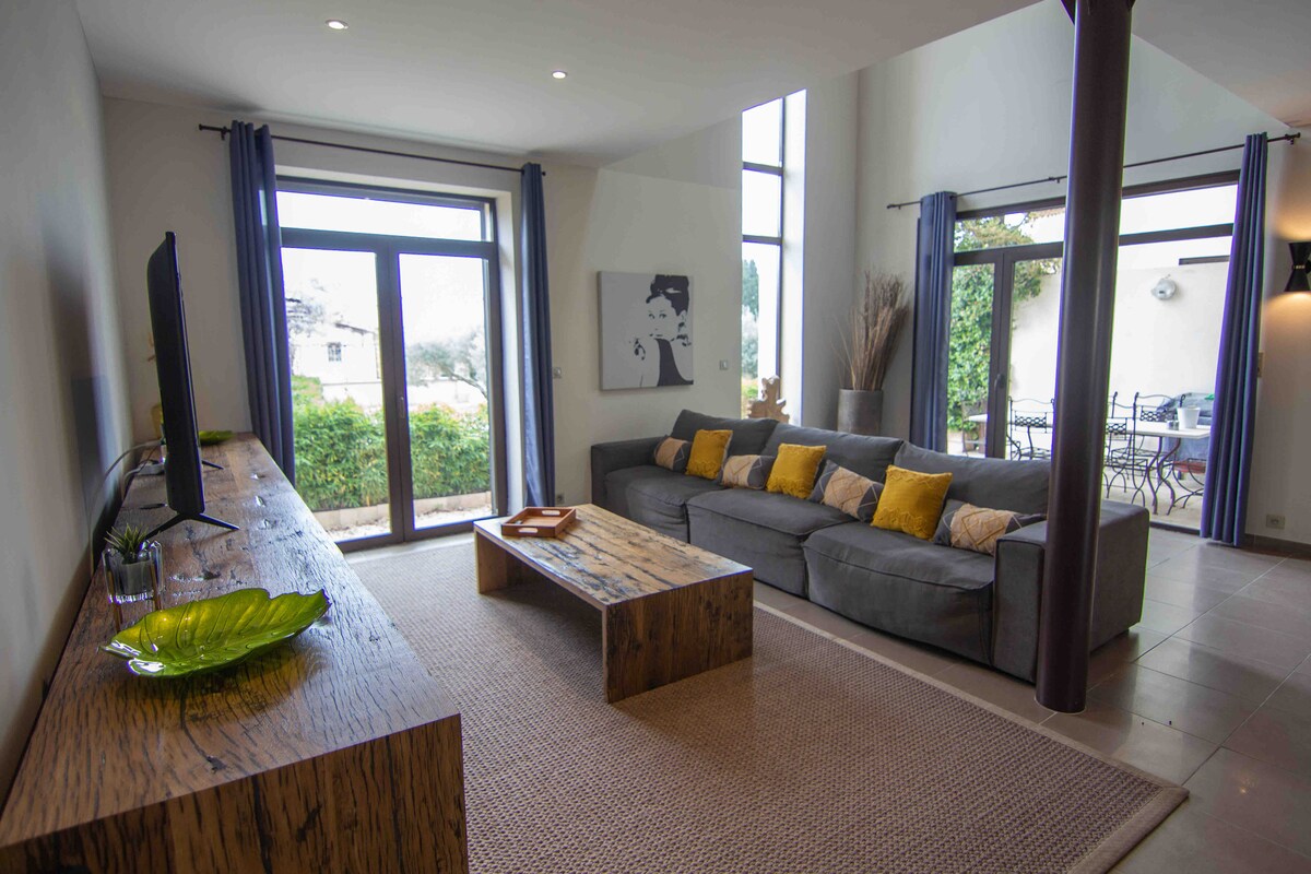 Nikmati apartmen reka bentuk yang elegan dan mesra, dengan spa dan luaran. Di pusat bandar Nîmes, 600 meter berjalan kaki dari Arena, berhampiran dengan kedai, tempat letak kereta dan tempat letak kereta berhampiran. Anda akan menikmati kawasan rehat, dapur yang lengkap, TV skrin besar, bilik mandi dengan pancuran mandian dan tab mandi balneo untuk bersantai. Penginapan ini terdiri daripada bilik tidur mezanin serta sofa yang boleh ditukar menjadi katil tambahan.