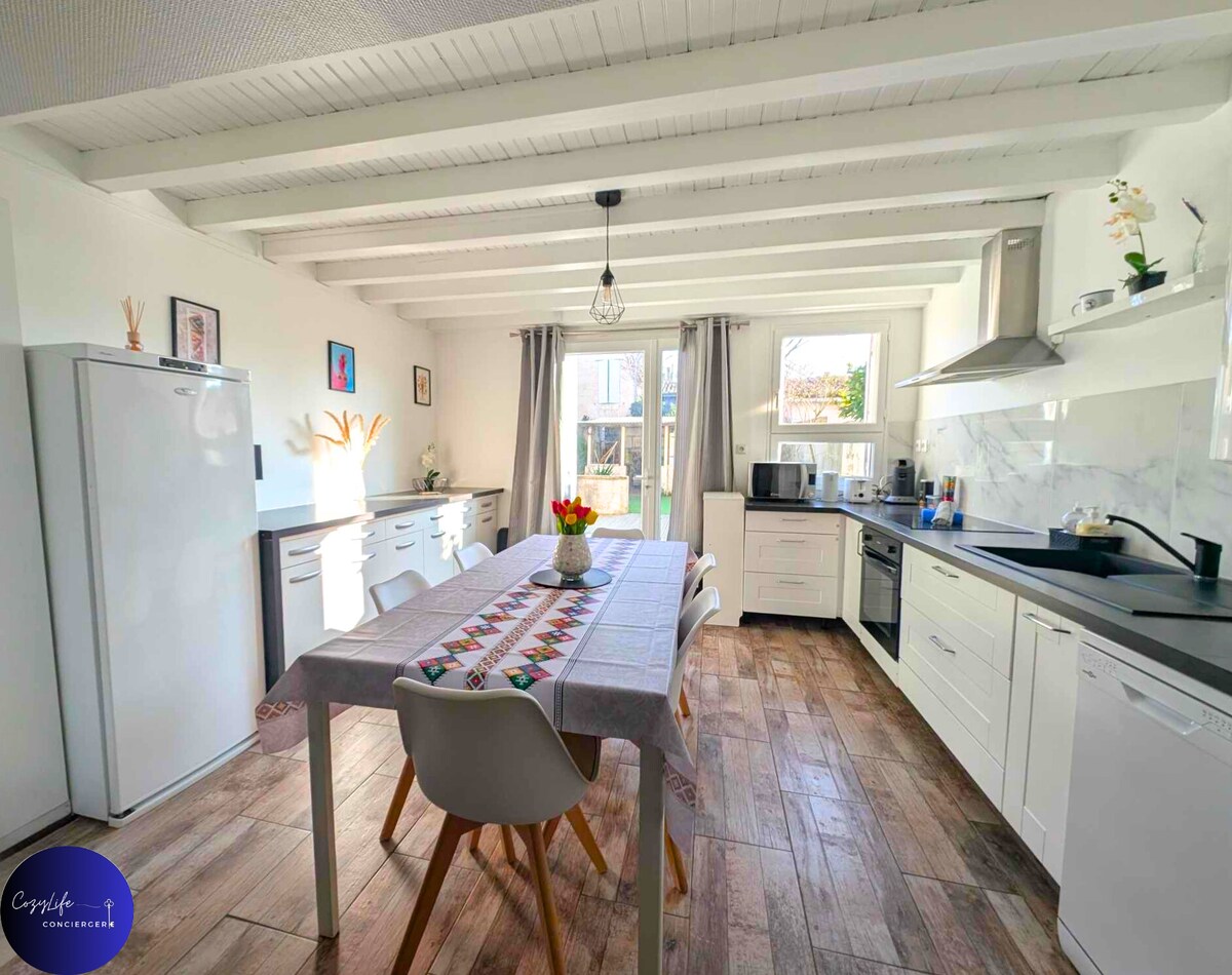 RUMAH menawan diklasifikasikan 3 ** tidak diabaikan, 75 m2. Taman tertutup dan lokasi kereta hadapan dengan KAMERA KESELAMATAN. Di halaman belakang 100 m2 dengan teres kayu 30 m2, bar tertutup kecil dan barbeku. Penginapan dengan selesa. Wifi /TV skrin rata besar 160 saluran / pembakar roti /cerek elektrik/pembuat kopi... Pilihan daftar masuk sendiri (kotak kunci). Outlet standard luaran untuk kenderaan elektrik (kw dicaj dan akan dibayar pada hari berlepas)