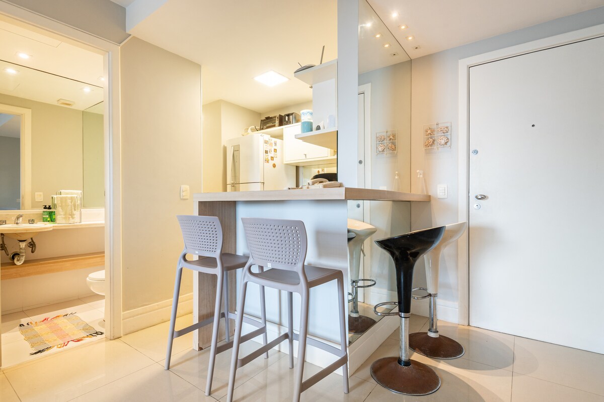 Relaxe e curta momentos neste espaço calmo e cheio de estilo. Localizado no condomínio de luxo do Apart Hotel Orizzonte esse loft conta com muito conforto e uma das vistas mais exclusivas e bonitas do Brasil. Apartamento em conceito aberto sala e cozinha, conta ainda com 1 quarto, closet , banheiro e 2 varandas debruçadas sobre um Cartão Postal. Apartamento equipado com 1 cama de casal Queen no quarto e 1 sofá cama de casal na sala . Microondas, geladeira, televisão e ar refrigerado no quarto