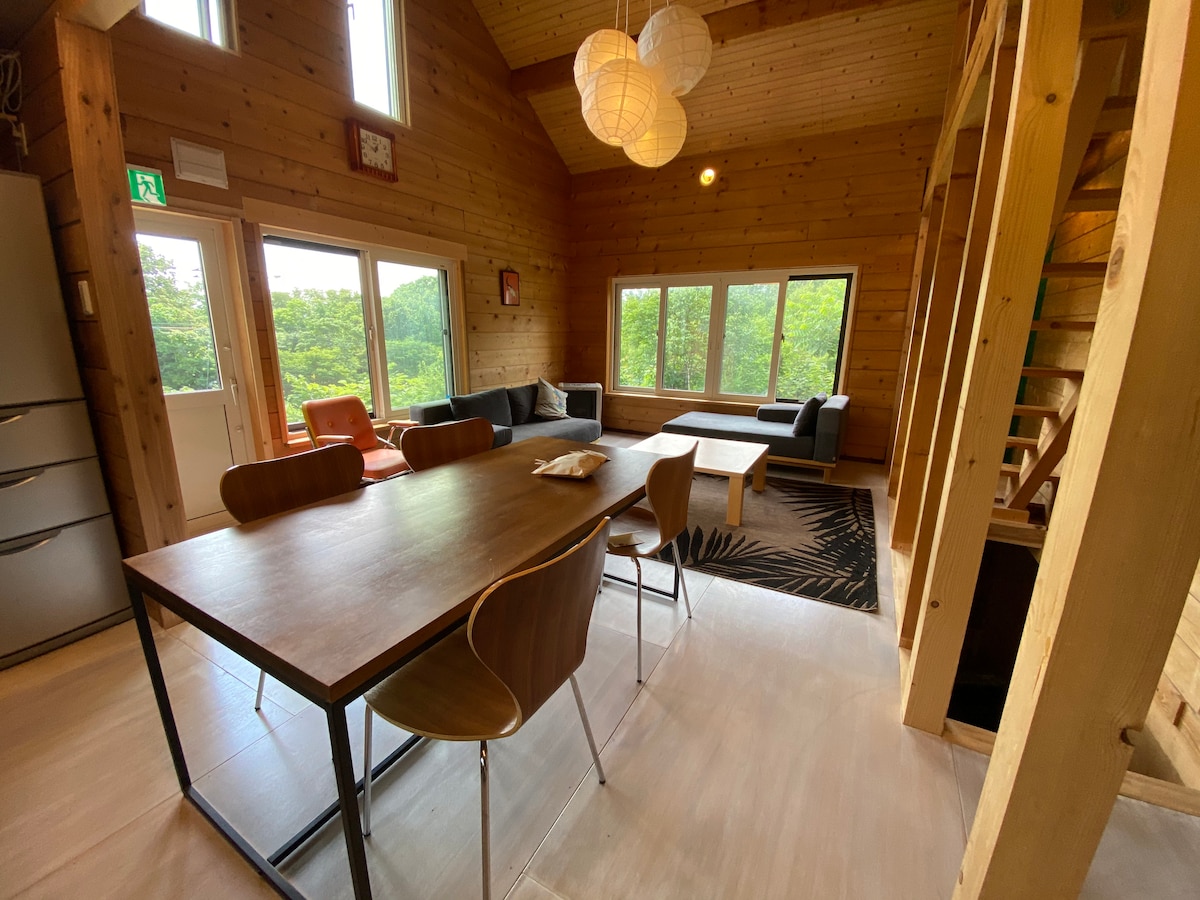 Dengan pemandangan Mt. Yotei, kemudahan kami adalah penginapan persendirian mewah yang sesuai untuk kumpulan besar sehingga 18 orang.Rumah timur ini serba lengkap, jadi anda boleh menikmati BBQ pada hari hujan tanpa bimbang tentang cuaca.Terletak hanya 15 minit memandu ke Rusutsu Resort, mudah untuk menikmati aktiviti seperti ski dan bermain golf.Ia juga dilengkapi dengan projektor 100 inci yang besar, sesuai untuk menonton filem dan persembahan.Selain itu, ia mempunyai ketuhar gas dan dapur kayu, dan disyorkan untuk mereka yang menikmati layan diri.Ruang ini juga disediakan untuk kerja, menjadikannya tempat yang sesuai untuk bekerja dari jauh atau mengembara untuk perniagaan.Nikmati bersantai mewah sambil menyatu dengan alam semula jadi sambil menikmati pemandangan Mt. Yotei yang menakjubkan. * Bangunan ini terletak di sepanjang jalan negara, jadi jika kereta besar berlalu, bangunan ini mungkin bergegar sedikit atau kuat.Jangan gunakannya jika anda gementar.