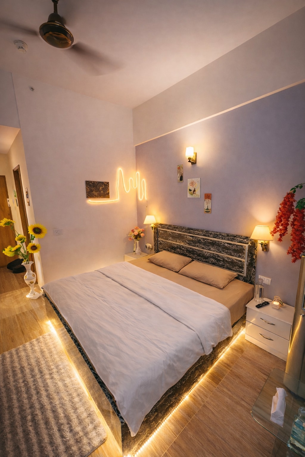 Step into our Luxurious Pink Paradise🩷 by Sunshine Stays✨, a beautifully designed space where soft pink aesthetics meet comfort and elegance. Perfect for couples seeking a cozy and romantic escape, the studio features stylish decor,warm lighting, a comfortable bed, smart Led TV, high-speed Wi-Fi, and a relaxing city-view balcony. Located in vibrant Gaur City Centre, Noida, with shopping, and entertainment nearby offering the perfect mix of luxury, comfort, and convenience Athithi Devo Bhava🙏💐
