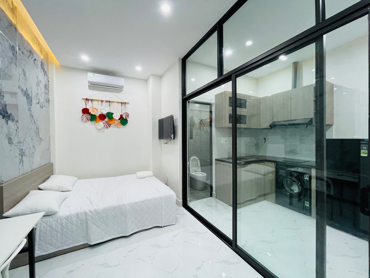 Bermula dengan pemandangan panorama pantai Da Nang yang paling menakjubkan, anda akan terpesona dengan pemandangan air yang seolah-olah tiada penghujung. Tuangkan secawan kopi awal pagi dan lihat matahari terbit yang mempesonakan yang menghadap air yang indah Dengar bunyi ombak di sepanjang pantai. Anda tidak mahu terlepas peluang ini! dapur canggih yang indah termasuk peralatan terkini dan dilengkapi dengan segala-galanya yang anda perlukan untuk memasak makanan.