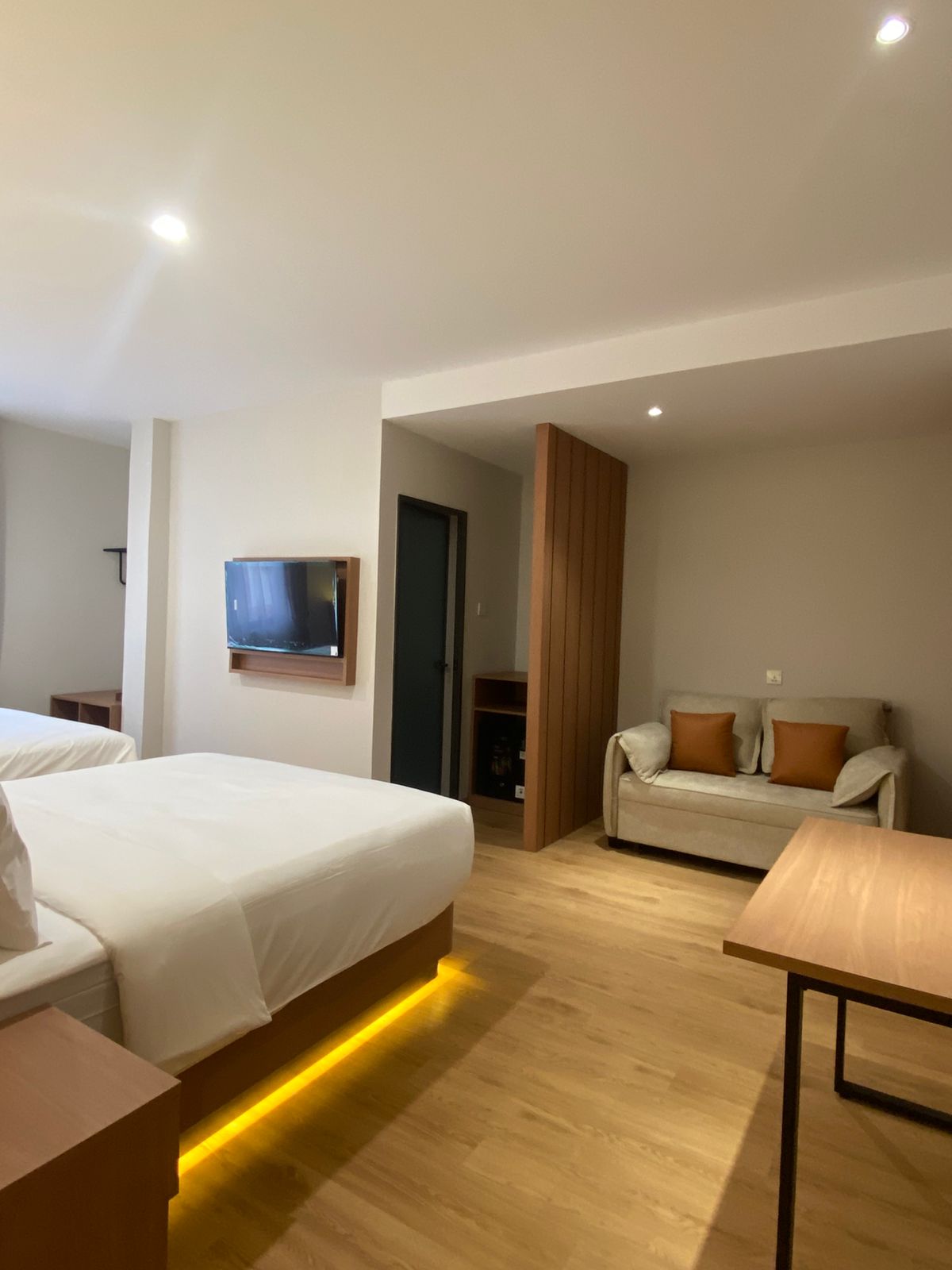 Bilik Eksekutif Grand dengan tingkap yang membanjiri ruang dengan cahaya semula jadi, bilik yang direka dengan elegan termasuk sofa yang selesa, sesuai untuk berehat atau bersosial, dan meja makan kecil yang sesuai untuk makan keluarga atau berkongsi momen dengan rakan-rakan. Hiasan yang canggih dan kemudahan yang praktikal memastikan gaya dan fungsi, menjadikannya pilihan yang sangat baik untuk keluarga atau kumpulan yang mencari gabungan keselesaan dan kemudahan. Nikmati percutian luas yang mengimbangi kemewahan dengan suasana rumah