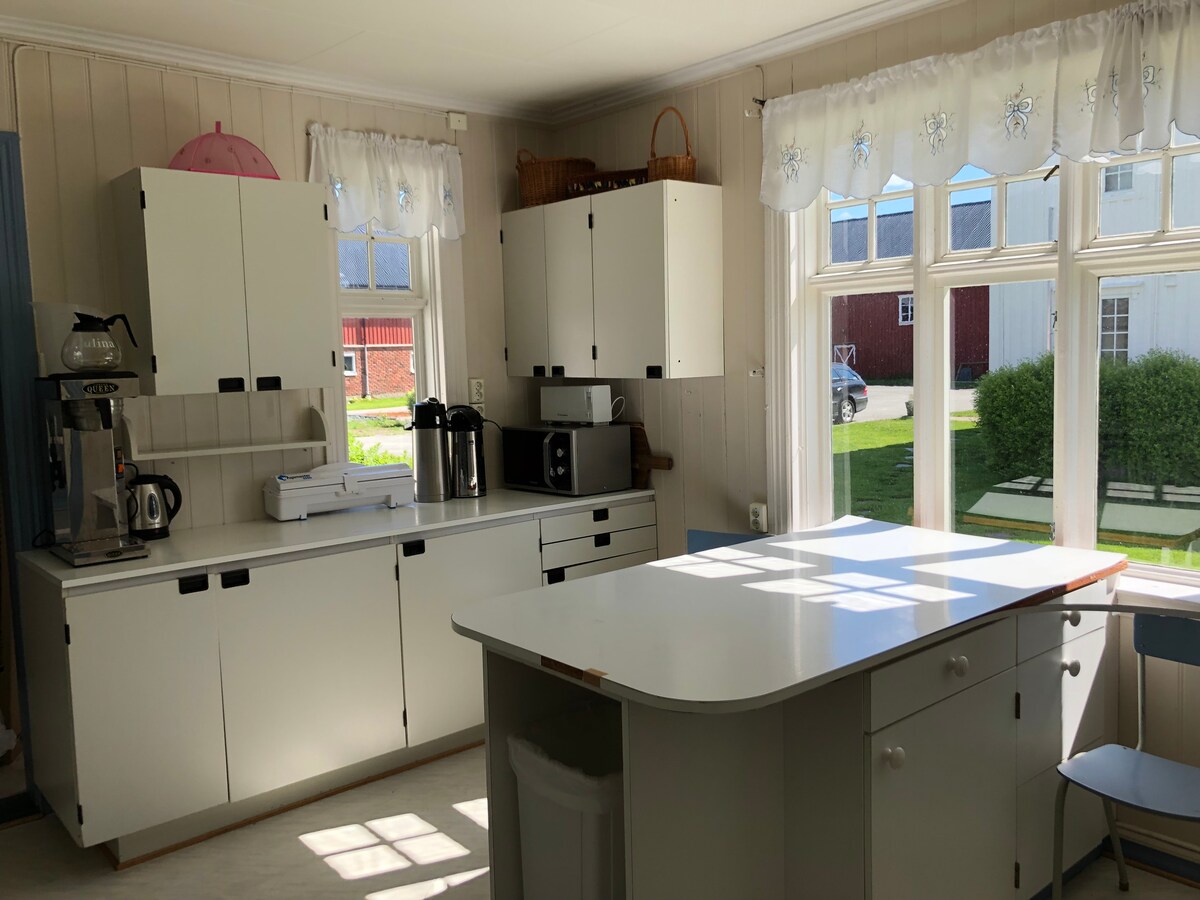 Selamat datang ke kediaman nelayan di Holandsøya Gård. Rumah bersejarah dari tahun 1919 ini mempunyai 11 katil dalam 7 bilik, 2 bilik mandi, ruang makan dengan pendiangan, lounge TV dan dapur besar. Nikmati pemandangan sungai dari teres, berlari di sekitar taman besar dan nikmati hidangan lazat di tepi pondok barbeku. Pada hari hujan, anda boleh menyalakan api di pendiangan dalaman dan menikmati minuman yang menyegarkan - ya, kami ada mesin pembuat ais. Dengan ruang yang luas di dalam dan di luar, ini adalah tempat yang sesuai untuk keluarga besar dan kumpulan rakan.