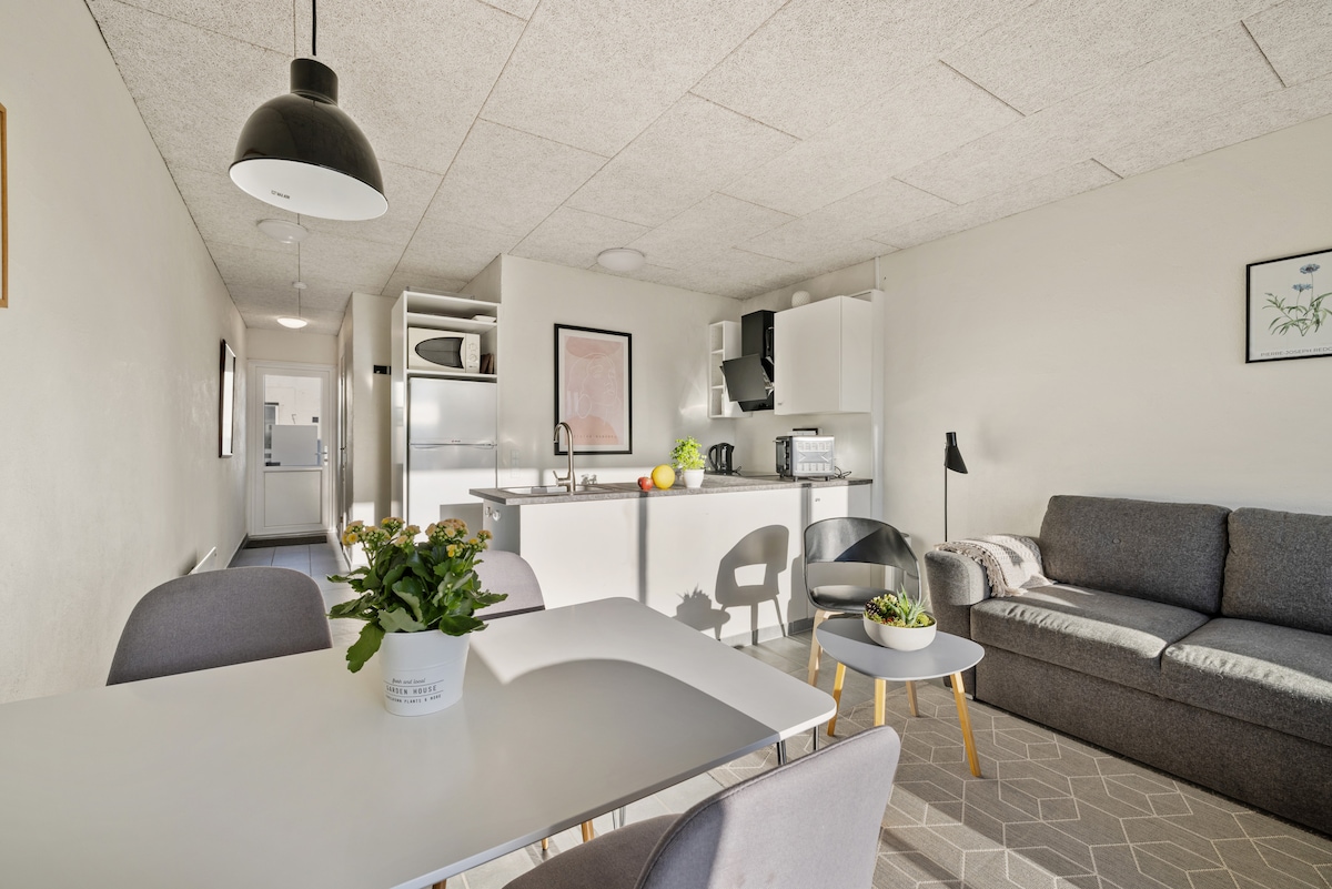Untuk 2 orang dewasa dan 2 orang kanak-kanak, tempat yang sesuai untuk percutian atau penginapan jangka panjang. Memuatkan sehingga 4 tetamu. 5 minit dari Pusat Membeli-belah dan 10 minit memandu ke pusat Aalborg, dengan restoran, bar dan kelab malam. Menampilkan katil 3/4, katil 2 tingkat (90x200cm), katil sofa, PC, projektor pawagam rumah, Wi-Fi, TV, mesin basuh/pengering, pemanasan pusat, tempat letak kereta persendirian & tetamu, dan taman tertutup. Pengangkutan awam berjarak 2 minit berjalan kaki.