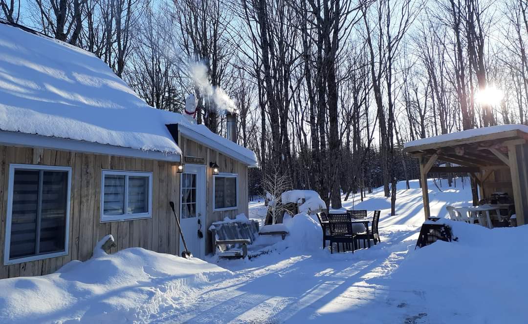Refuge rustique unique en son genre parfait pour décrocher du quotidien. Pas de reseau cellulaire ***WI-FI haute vitesse*** Sans eau courante (nous fournissons l'eau selon vos besoins pour faire vaisselle et laver mains) avec électricité, poêle à bois ( bois fourni interieur en saison froide octobre a avril ) et toilette compost foyer extérieur : nous fournissons de la croute de cèdre pour les feux exterieurs. il est interdit d'utiliser le bois intérieur pour faire des feux extérieurs.