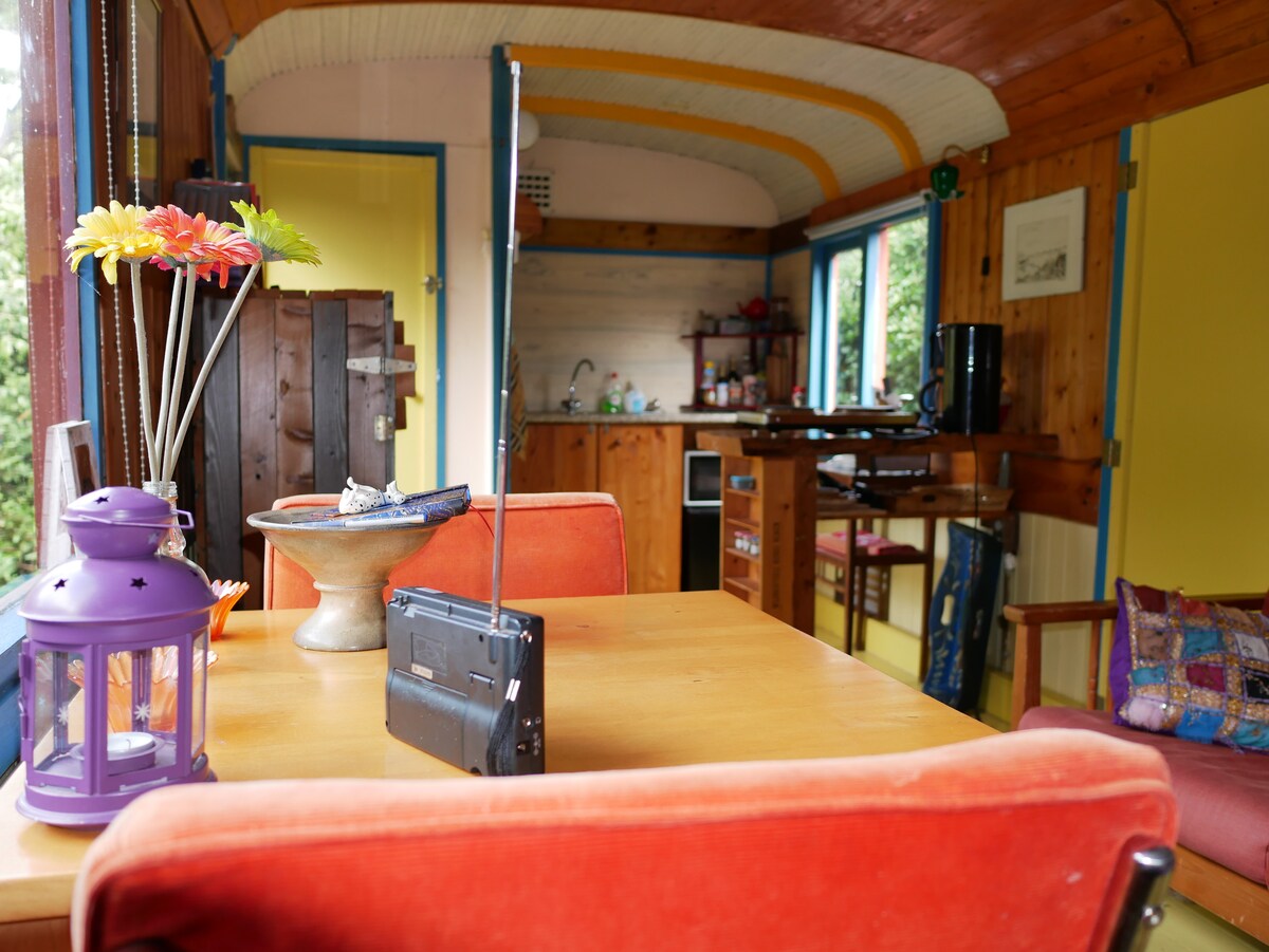 Bas cerah dengan suasana Caribbean ini sememangnya pengalaman yang unik! Disebabkan oleh susun atur yang pintar, penginapan anda lengkap, seperti dapur, pancuran mandi dan tandas berasingan, banyak ruang almari, katil double yang luas (160x200) dan sofa yang selesa (tidur) (140x190). Pilihan yang sempurna untuk dua orang tetapi juga sesuai untuk keluarga dengan (sehingga 2) kanak-kanak. Di teres anda sendiri, nikmati malam musim panas yang meriah untuk suasana yang "benar-benar jauh"!