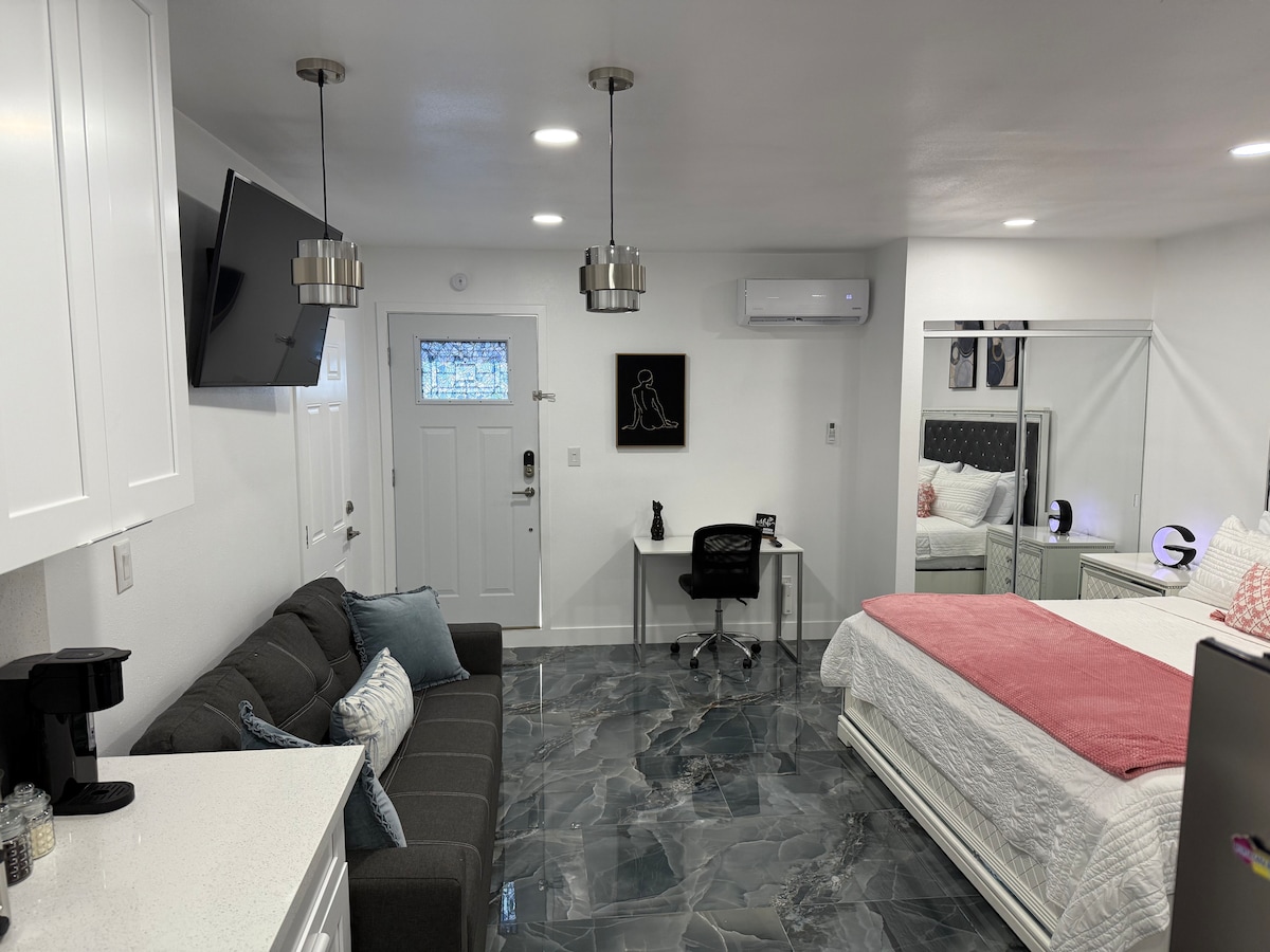 ✨ “Nikmati studio baharu dengan hiasan moden, dapur lengkap, bilik mandi bergaya dan semua kemudahan yang anda perlukan untuk penginapan yang selesa. Terletak di kejiranan yang tenang di Barat Laut Las Vegas—sesuai untuk pasangan yang mencari privasi dan keselesaan.” ✨