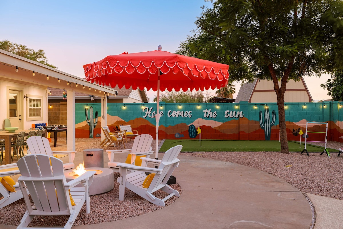 Selamat datang ke The Hidden Hacienda Scottsdale! Percutian yang menyeronokkan dan unik dengan hiasan koboi yang bergaya, kolam renang, spa, karaoke, dan permainan—sesuai untuk bujang, keluarga, atau percutian golf. Memuatkan 10 orang dengan katil yang selesa, TV pintar, meja pool dan dapur yang lengkap. Bersantai di bawah pohon palma yang bergoyang, berlatih bermain di padang golf mini, atau bersantai di oasis halaman belakang peribadi anda dengan tempat duduk yang selesa di tepi unggun api dan televisyen luar. Beberapa minit ke Kierland Commons, padang golf terbaik, Latihan Musim Bunga dan banyak lagi!
