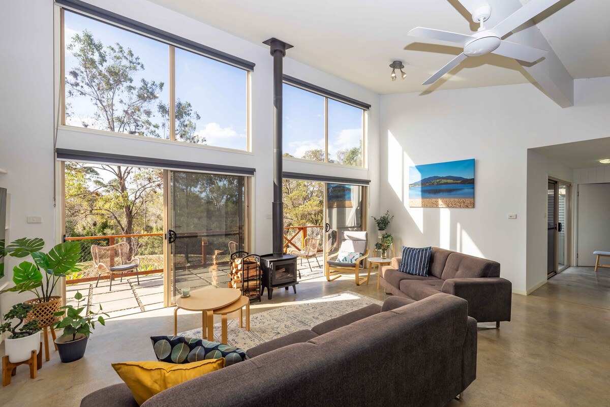 Terletak dengan sempurna di sebelah salah satu pantai dan tasik yang paling cantik! Rumah ini baru dihiasi dan mempunyai tilam berkualiti untuk memastikan rehat malam yang baik. Kembali ke masa lampau dan asingkan diri anda dengan pengalaman semula jadi Australia yang jarang ditemui. Nampaknya masa berhenti di sini. Dikelilingi hidupan liar. Nikmati hari-hari yang hangat & malam yang sejuk di tepi api. Lihat persembahan berbintang yang menakjubkan pada waktu malam. Nikmati keajaiban. Ikan, Meluncur, berkayak, mengembara berjalan kaki, berehat & Terokai...