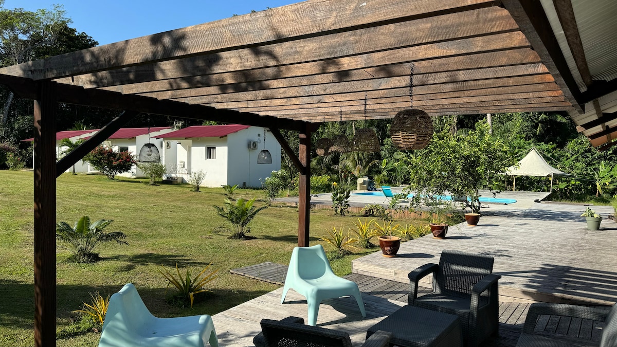 Kotej baru kami yang cantik dan selesa adalah rumah kecil yang bebas. Dua bilik dengan dua katil yang sangat selesa, dua bilik mandi lengkap. Ruang tamu dengan tv kabel, ruang makan moden. Dapur lengkap. Dikelilingi oleh alam semula jadi, keselesaan dan selera yang baik, anda akan menikmati penginapan anda. Jika anda mengembara dengan keluarga besar, minta yang BERSAMBUNG dengan Blue Bungalow, ia mempunyai satu bilik, tiga katil, bilik mandi lengkap, tv, dan ruang tamu. Isyarat internet sangat baik.