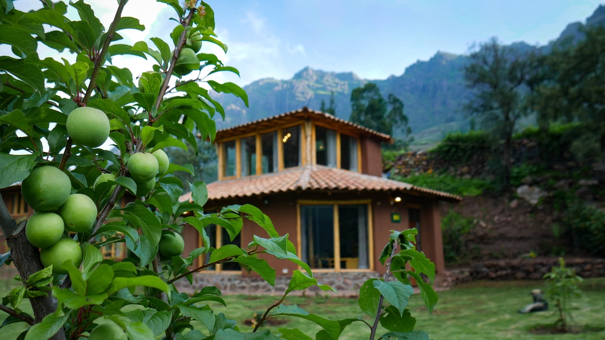 Rumah ekologi baharu, luas dan cerah. Terletak di tengah-tengah Valle Sagrado, 5 minit dari pusat Urubamba dan 20 minit dari Ollanta. Dikelilingi oleh gunung dan anak sungai yang melintas di dalam penginapan. Katil saiz king, ruang untuk yoga atau bekerja, balkoni dan air panas solar di dapur, bilik mandi dan pancuran mandi. Sesuai untuk berhubung semula dengan alam semula jadi tanpa mengorbankan keselesaan. Dibuat dengan kasih sayang, difikirkan untuk kesejahteraan anda. Kami menunggu anda!