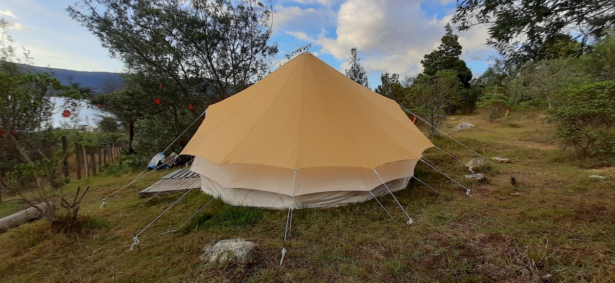 Conecta con la naturaleza y ten noches más cerca de las estrellas en esta escapada inolvidable, en un sitio privado, lleno de magia y encanto. En GLAMPINGLAND puedes disfrutar de zonas para camping, con espacios verdes y con vista a la mágica laguna natural de Suesca, a tan solo 15 minutos del cultural y colonial municipio de Cucunubá y a 35 minutos de Ubaté. Filosofía ecológica, tenemos el objetivo de sembrar 10mil árboles en los primeros 5 años, ya hemos sembrado 1.600 árboles a hoy.