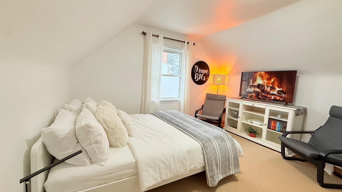 Tiada tempahan pihak ke-3! Tiada parti! Tiada pelawat! Banyak peningkatan dan ciri-ciri moden mewah! Siling tinggi di atas unit bawah tanah gred. Ruang tamu konsep terbuka termasuk pendiangan, TV pintar, dapur penuh, dobi dan almari pakaian besar 1 tempat letak kereta Nikmati laluan indah di Woodbridge 10min ke kedai Vaughan Mills & wonderland Kanada 15min ke lapangan terbang Pearson Pengawasan Luaran 24 jam. Satu kamera di atas jalan masuk yang kelihatan. Satu kamera di atas pintu depan dan satu di luar pintu ribut ke unit Airbnb