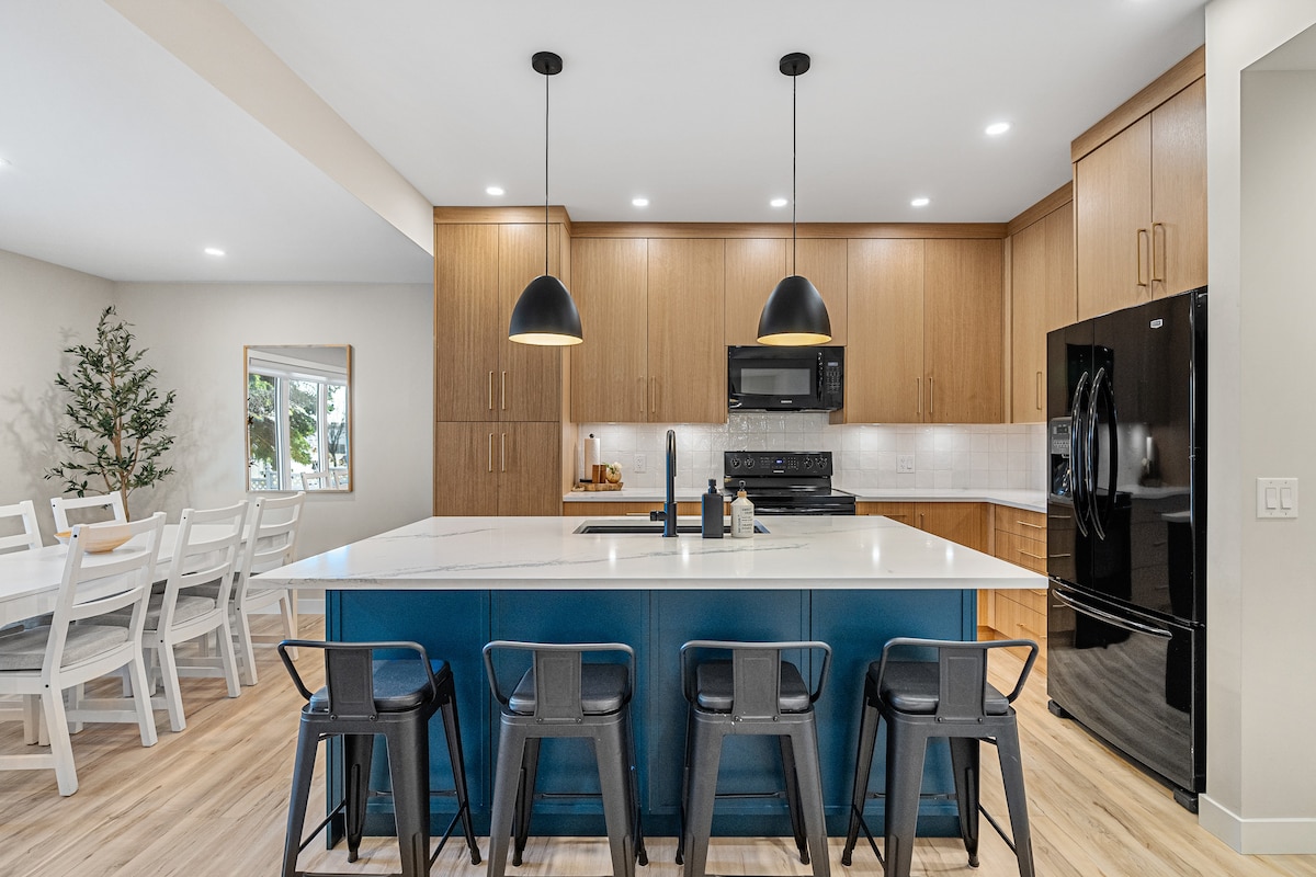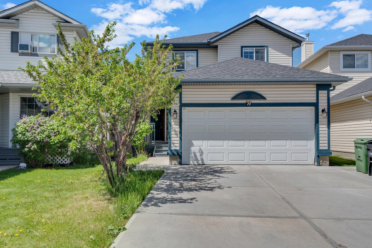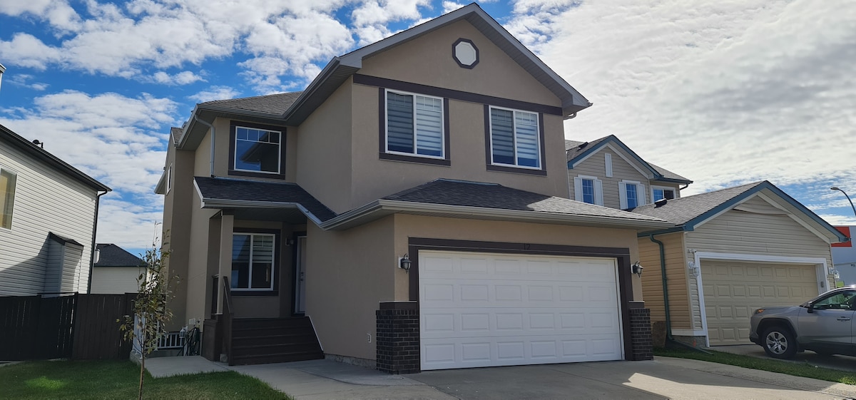 Enjoy a spacious and modern 3 Bedroom home designed for comfort, privacy, and easy group stays. Perfect for families, business travelers, and friends visiting Calgary, this home comfortably sleeps up to 7 guests with 2.5 bathrooms and a fully equipped kitchen. • Quiet Neighborhood • Fast access to Calgary's YYC Airport and major routes • 70-inch Smart TV for movie nights • Complimentary Coffee and Tea • Free Street parking & Assigned Parking • Fast fibre WiFi • King bed in the master bedroom