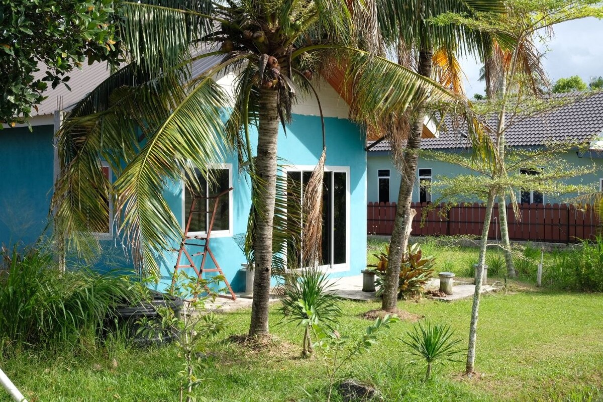 Penginapan yang selesa dan tenang dikelilingi oleh kehijauan. Melangkah melalui pintu depan dan anda akan disambut oleh ruang luar yang menawan yang teduh dengan pepohonan yang subur, menawarkan rasa privasi dan ketenangan. Vila ini menawarkan suasana santai dan selesa yang membuat anda berasa seperti di rumah sendiri.