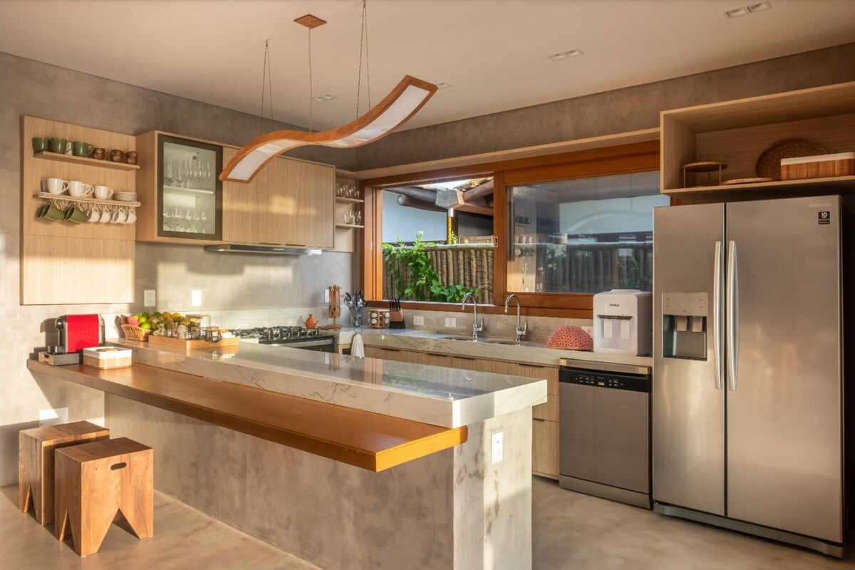 Berseronok bersama seluruh keluarga di tempat yang bergaya ini. Wide Vilage 3 suite dengan Gourmet Balcony, dihiasi halus dan akses persendirian ke pantai. - 3 Suite dengan penghawa dingin - wifi - Dapur super dilengkapi dengan peti sejuk beku. - TV 65 Polegadas na Sala com Netflix, YouTube dll. - Kilang Wain - Kilang Bru - BBQ - Pemandangan Laut - Tingkat atas dengan jumlah privasi - 2 Ruang Garaj - Gimnasium pemandangan laut - Pembangunan baru yang lengkap dan sangat terkini. #Tenaga dicaj secara berasingan mengikut perjanjian penggunaan