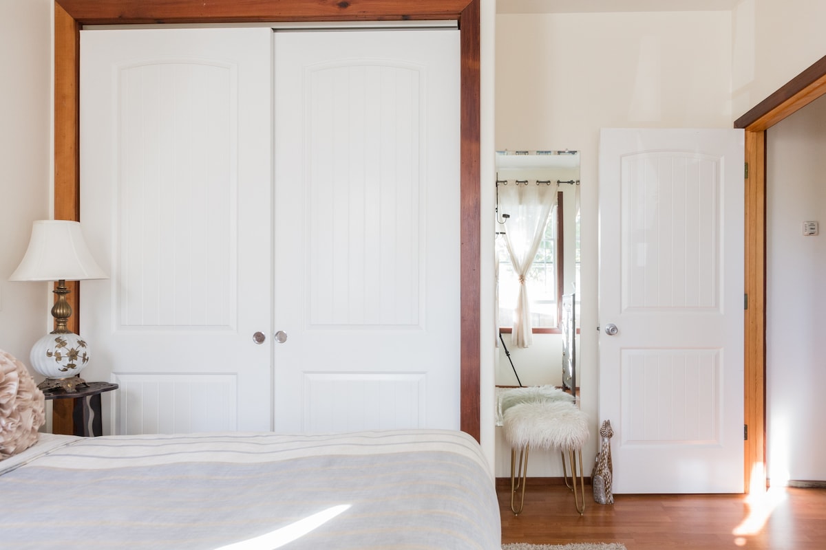 Apartmen persendirian yang terletak di pusat bandar Santa Cruz. Bertolak balik dari jalan dengan pintu masuk persendirian dan bilik mandi. Langit-langit yang tinggi, siling pinus, cahaya semula jadi dan pemandangan taman. Pantai ini terletak beberapa blok dari satu arah dan kafe, restoran dan kedai di pusat bandar tidak jauh dari sini. Apartmen ini sangat sesuai untuk dua orang dan tetamu juga boleh menikmati halaman belakang yang cerah. Bilik tidur ini mempunyai katil queen yang selesa dan kelengkapan tempat tidur yang selesa. Bilik TV mempunyai sofa tarik (boleh menempatkan satu) dan ruang duduk mempunyai katil siang (boleh menempatkan satu). Dapur ini dilantik dengan baik untuk memasak atau hanya menikmati secawan kopi atau teh yang enak. Sila hubungi hos jika kumpulan anda melebihi dua orang. Aturan khas perlu dibuat dan tertakluk kepada ketersediaan. Pintu masuk persendirian, akses ke halaman belakang. Jadual saya jarang membolehkan saya bertemu tetamu apabila mereka tiba. Tetapi kotak kunci dan kod membolehkan tetamu tiba pada bila-bila masa yang sesuai untuk mereka. Saya sentiasa boleh dihubungi melalui Airbnb, telefon, SMS atau e-mel. Penginapan ini terletak di kejiranan yang meriah yang penuh dengan pelajar dan artis. Penginapan ini terletak di lokasi yang sesuai untuk meneroka pusat bandar atau berjalan kaki 10 minit ke pantai untuk meneroka tempat meluncur terkenal. Hentian bas untuk naik ke University of California Santa Cruz adalah satu blok dari sini. Hab Metro dengan semua bas berjarak 3 minit berjalan kaki dari studio. Kafe, restoran, bar, kedai, dll. semuanya dalam jarak beberapa blok. Dinding biasa membolehkan bunyi mengembara; amalkan senyap agar semua tetamu berasa selesa. Hormati jiran dan amalkan akal fikiran. Nombor sijil pendaftaran penghunian sementara Majlis Perbandaran Santa Cruz saya ialah 877-955.