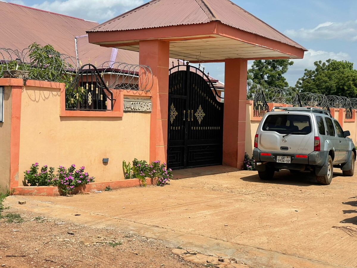 Bersantai sebagai individu, bersama keluarga atau rakan anda di tempat yang indah dan damai ini. Kami mempunyai kawasan letak kereta yang luas untuk kereta dengan dinding keselamatan untuk privasi. Rumah ini terletak di kawasan perumahan Vittin di Tamale, yang merupakan kejiranan yang sangat selamat, tenang dan menyenangkan untuk didiami. Sangat mudah untuk mendapatkan pengangkutan awam ke pusat bandar utama (kurang daripada 10 minit memandu). Rumah ini berhampiran dengan dua jalan utama dan di setiap jalan utama, anda boleh mencari stesen minyak/pasar raya untuk membeli-belah anda