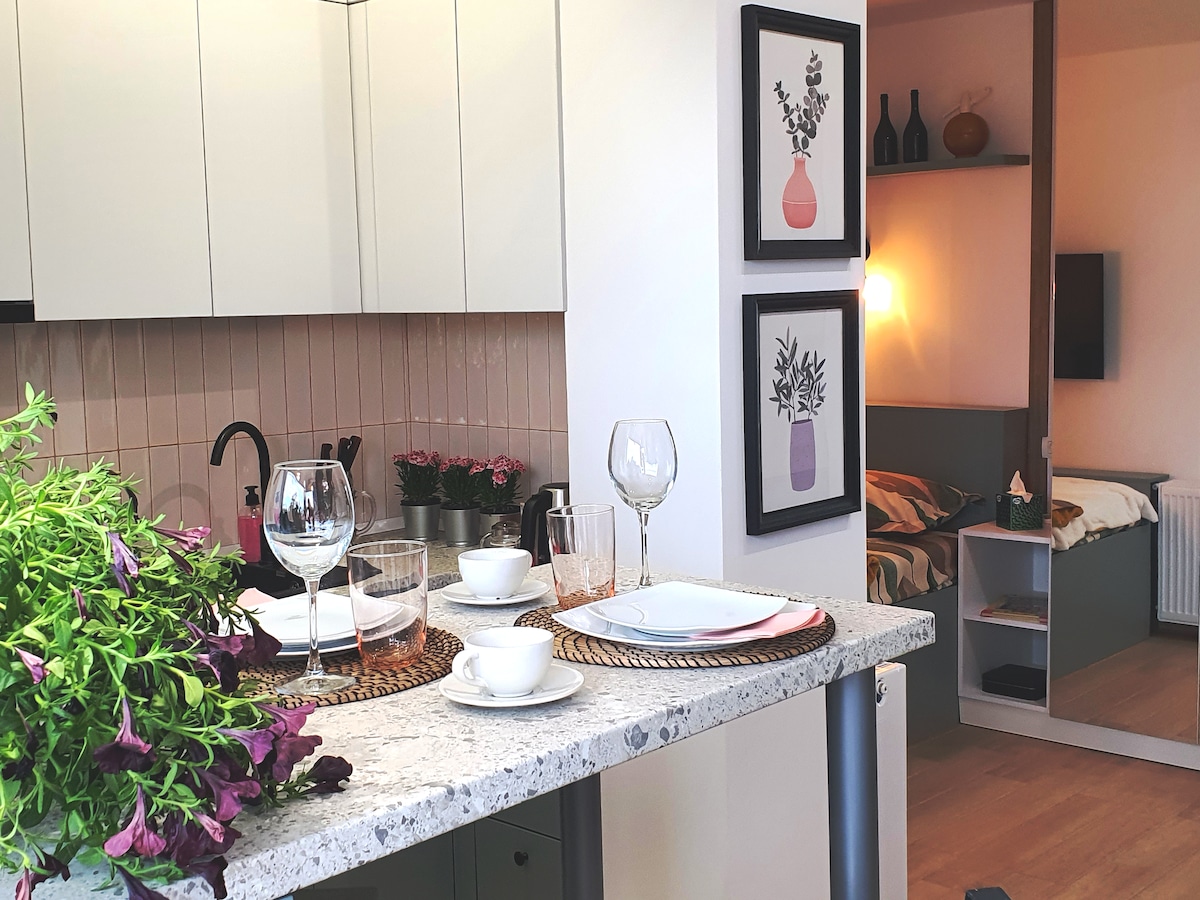 New and modern apartment - feel at home in a quiet area, just 5 minutes walk from the metro station. The old city center of Bucharest is only 15 minutes away, so you can enjoy the charm of the city. Relax in the private garden and enjoy a delicious coffee, admiring the green grass. The apartment has WiFi6, dishwasher, washing machine with dryer, coffee maker, air conditioning, TV and a very comfortable sofa bed for a restful sleep.