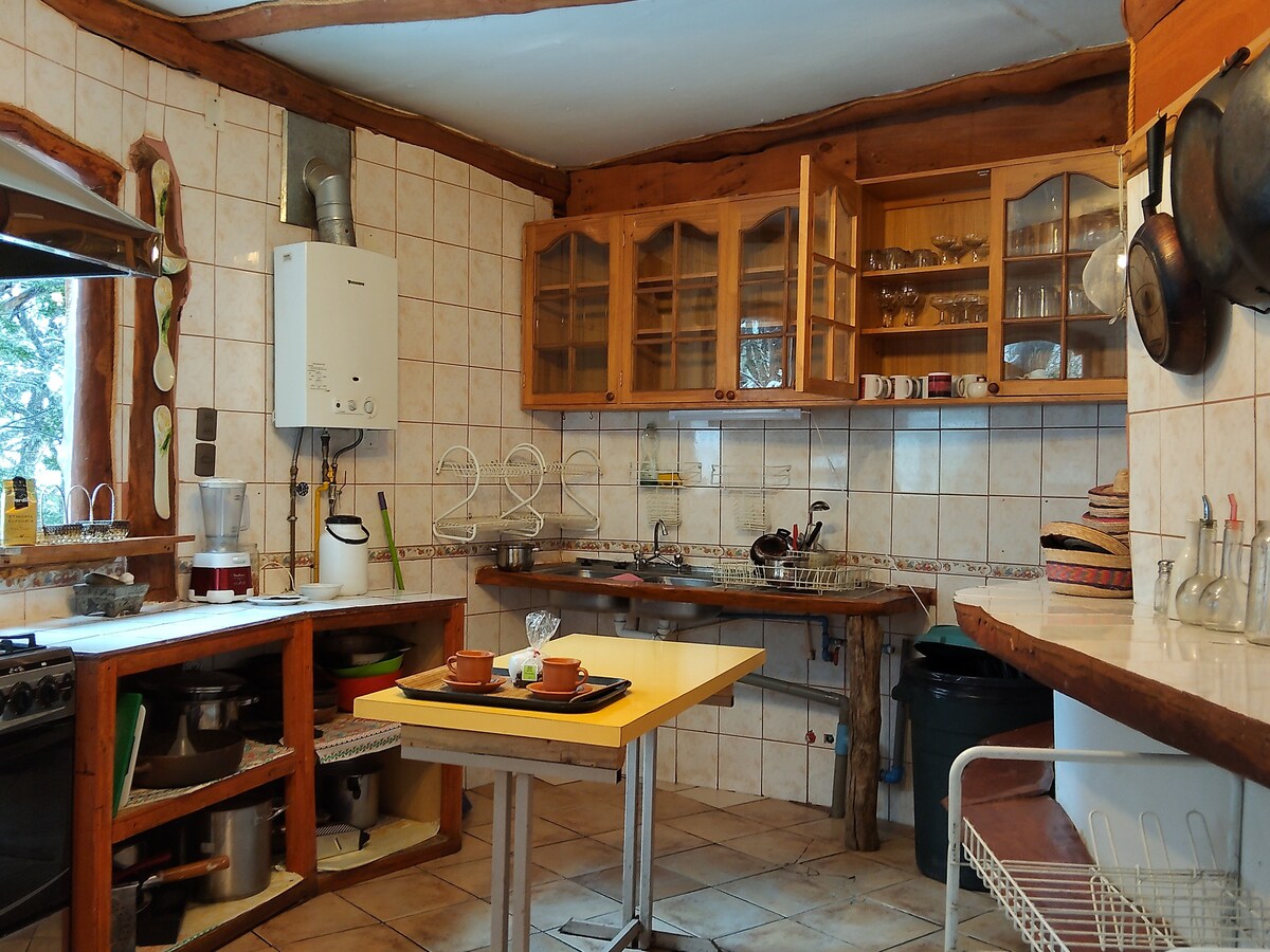 Cabaña in La Invernada KM 58 of N55. Lengkap. 1 katil queen, 2 katil saiz penuh dan dua tingkat. Barbeku di patio, ketuhar + ketuhar gelombang mikro, tuala, cadar, tab mandi air panas (kos tambahan), dek dengan anak sungai dan sungai murtad di belakang. Mesin basuh dan pengering tersedia dengan kos tambahan. Ia bersedia untuk menikmati ketenangan persekitaran semula jadi. Sangat selesa dan elegan. Kami mempunyai 2 kabin yang dipisahkan oleh carport. Bergantung pada cuaca 4x4 mungkin diperlukan