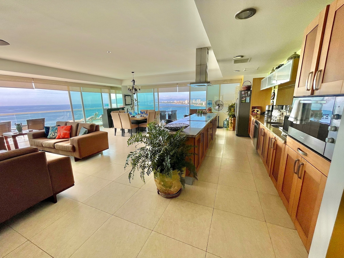 Menakjubkan 3 bilik tidur, 3.5 bilik mandi. Kondominium ini berada di tingkat 8 kondominium tepi laut Pantai sayan yang mempunyai bumbung terbaik di semua puerto vallarta! Terdapat lantai marmar putih besar di seluruh Apartmen dengan bunyi bose keliling, internet berkelajuan tinggi, 4 tv, Dish Usa, Vitra dan perabot Perkakasan Restoratio, pemandangan menakjubkan ke teluk dan pantai los muertos, bangunan ini mempunyai 3 kolam di lobi serta kolam renang infiniti di atas bumbung, 2 jakuzi, bilik sauna, bilik urut dan gimnasium.