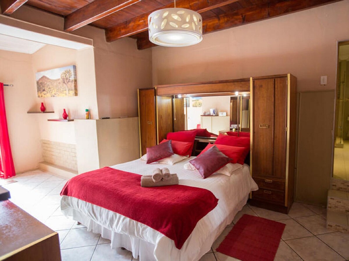 Bersantai di ruang moden yang tenang ini. 2km di luar Vredendal menghadap ladang anggur. Terbaik daripada kedua-dua dunia. Ingin melawat bandar dan mengalami gaya hidup ladang. Ini ialah tempat yang sesuai untuk anda. Apartmen ini dilengkapi dengan katil saiz King, peralatan TV Pintar yang boleh disambungkan ke aplikasi penstriman kegemaran anda. Wifi dan sistem penggera. Kami menawarkan kayu braai dan air minuman segar dan kami gembira untuk cuba dan menerima anda dengan sebarang permintaan khas sebaik mungkin.