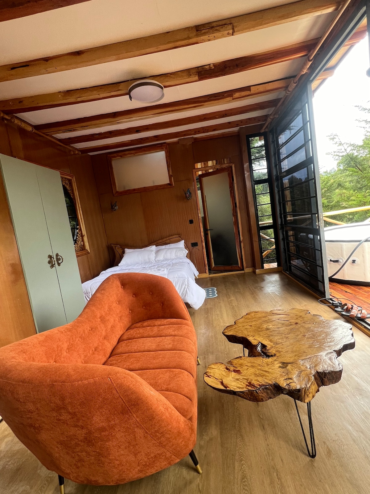 A cozy riverside studio cabin nestled among the trees, offering dreamy forest views and the soothing sounds of flowing water accompanied by picturesque views of the Mt Kenya’s snowy peaks —perfect for a romantic escape.