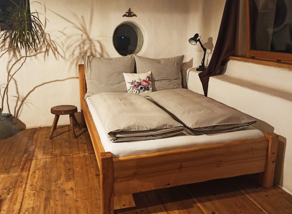 Penginapan saya sesuai untuk orang yang menghargai keamanan dan sensitiviti alam semula jadi... keluarga (dengan anak) atau kumpulan rakan. Tetamu yang mempunyai haiwan peliharaan turut dialu-alukan. Kotej ini dibina dalam teknologi dinding Prusia, dan bumbungnya ditutup dengan jerami, yang memberikan watak yang unik. Teres besar dengan pemandangan indah kawasan sekitarnya menjadikannya terasa seperti cerita dongeng... Saya boleh meyakinkan anda bahawa jika seseorang menyambut mereka, ia akan menjadi sukar bagi mereka untuk mengucapkan selamat tinggal.