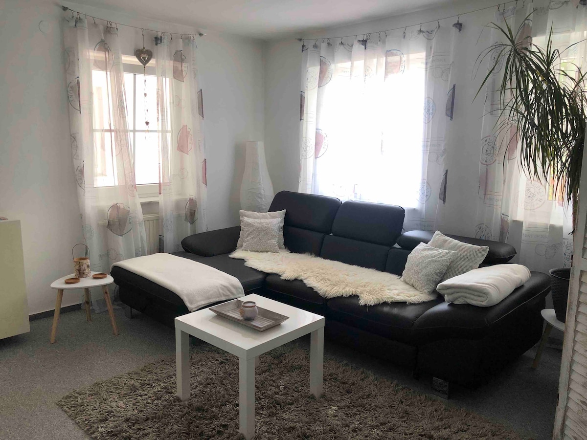 Kami menyewa apartmen berperabot moden kami dengan ruang tamu seluas 40m². Kami memberi perhatian khusus kepada kebersihan dan disinfeksi selepas setiap tetamu! Tingkat bawah - 1.5 bilik dengan dapur kecil, bilik mandi dan pintu masuk berasingan. Apartmen ini dilengkapi dengan katil bujang 120 cm x 200 cm di bilik tidur dan sofa lipat moden termasuk penutup tilam yang selesa kira-kira 120 cm x 190 cm. Bantal, selimut, cadar dan tuala, peti sejuk dengan peti sejuk beku, pinggan mangkuk, pembakar roti, mesin kopi Senseo,