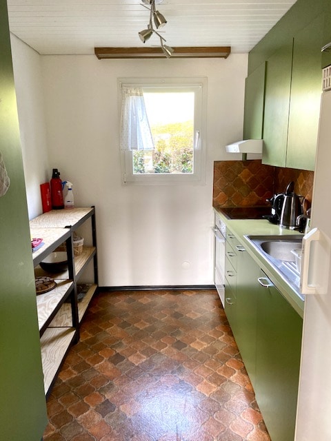Tetamu yang dihormati Ia menanti anda ruang 1.5 bilik yang moden, sebahagiannya diubahsuai dan siap sedia (kira-kira 35m2) + bilik simpanan kedua di tingkat atas penginapan 3 tingkat dengan tangga khusus (jika anda tidak selesa dengan tangga: tiada lif ;-). Penginapan ini terletak dengan indah di atas cerun, tertanam oleh alam semula jadi yang hijau. Ruang ini memancarkan cahaya Scandinavia yang indah. Lereng bumbung menambah kelapangan & udara kepada suasana. Di sini kami menjemput anda untuk berehat & berseronok!