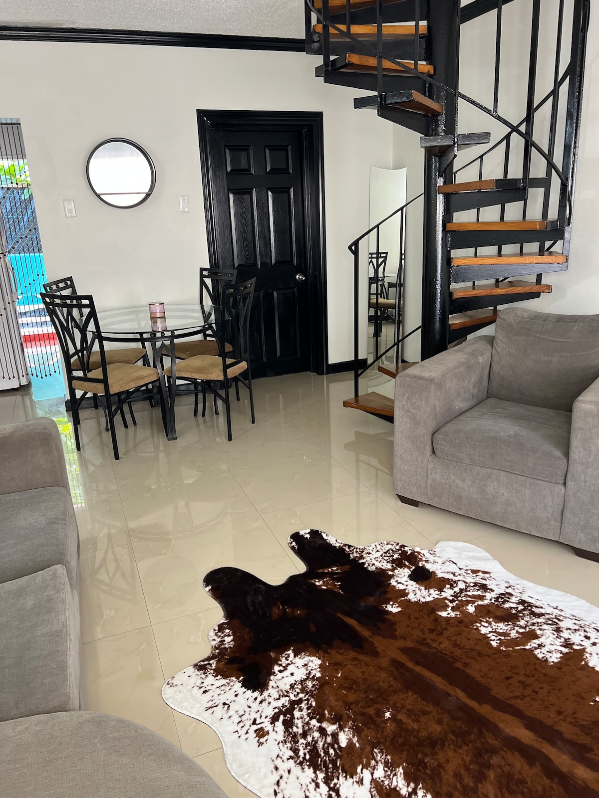Post Melissa-Semua utiliti berfungsi. Studio tepi kolam moden, pemandangan bandar + laut. Alexa Smart & kemasukan tanpa kunci. Tengah di Ocho Rios, keselamatan berpagar 24 jam, Sky Castles, 5 minit memandu ke tarikan (Air Terjun Sungai Dunn, Mystic Mountain) & kedai. Jubin porselin untuk rasa mewah. Dapur lengkap, TV pintar, Selamat, pancuran mandi, 1 katil queen untuk 2 & sofa katil untuk 1. Teres yang dilindungi, tempat letak kereta percuma & akses kepada 2 kolam renang menjadikan penginapan ini wajib. Kamera berada di atas pintu hadapan, ini untuk keselamatan tetamu.